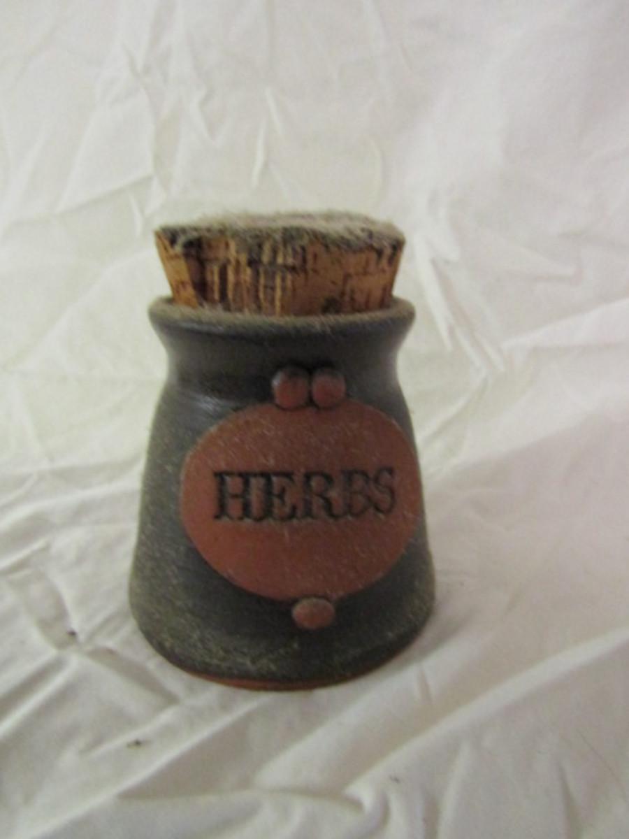 Pottery 'Herb' Jar with Cork Lid- Signed by Artist