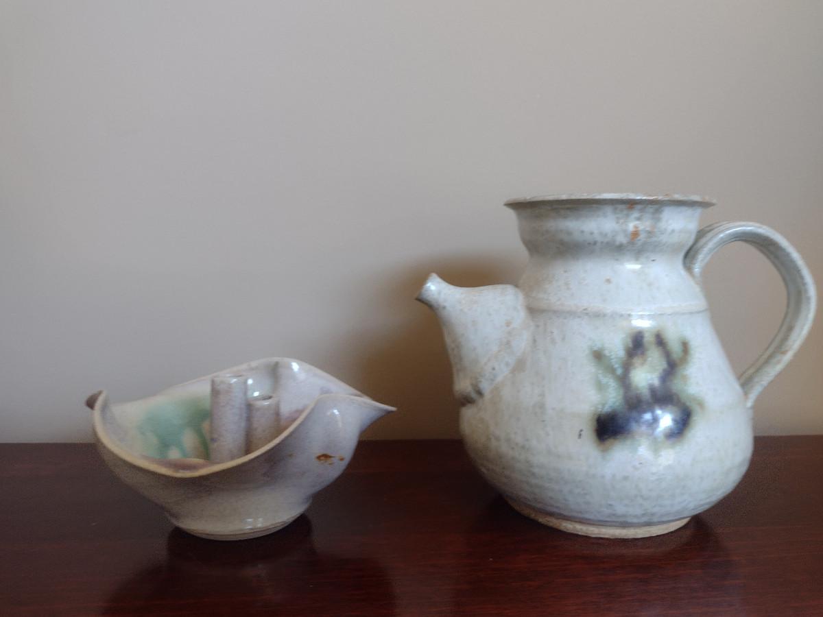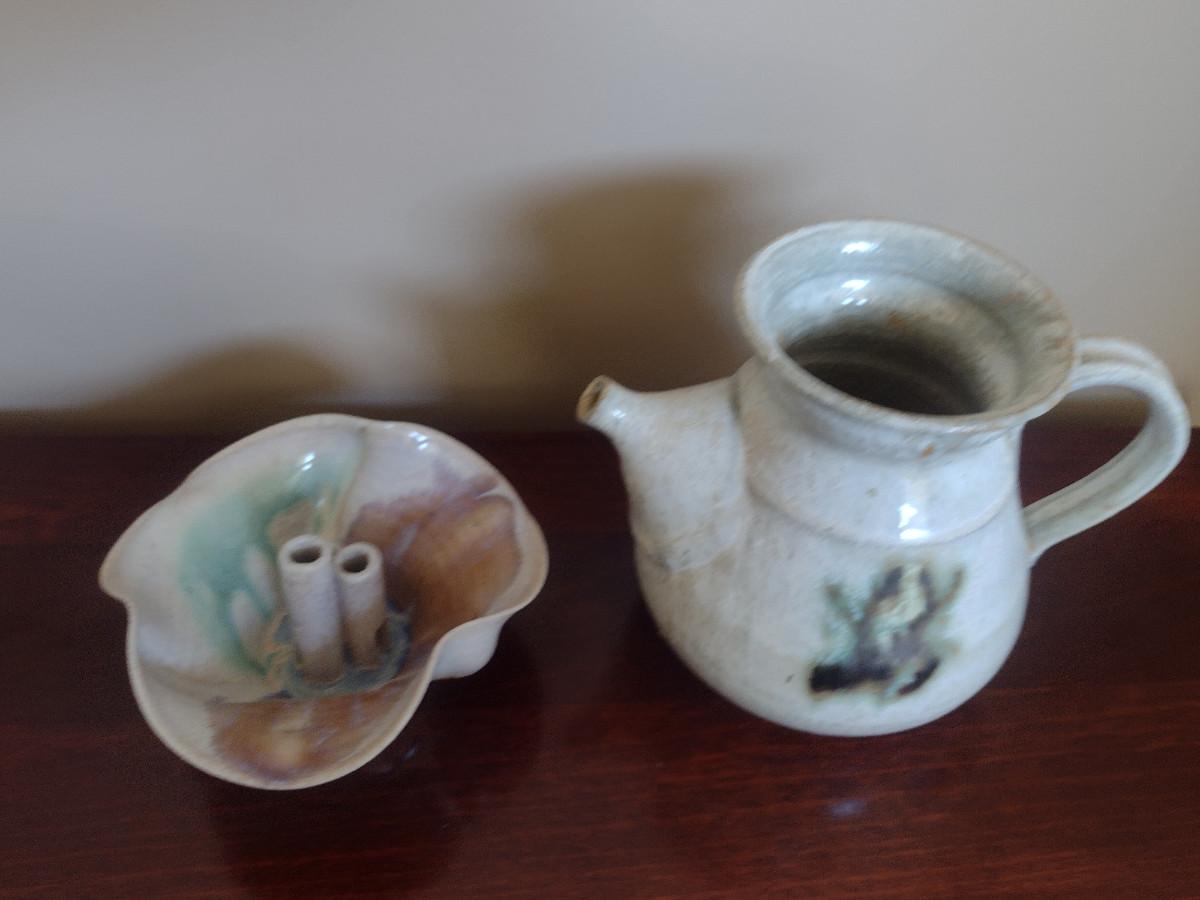 Pottery Ikebana Vase and Tea Pot. Pot has no lid.