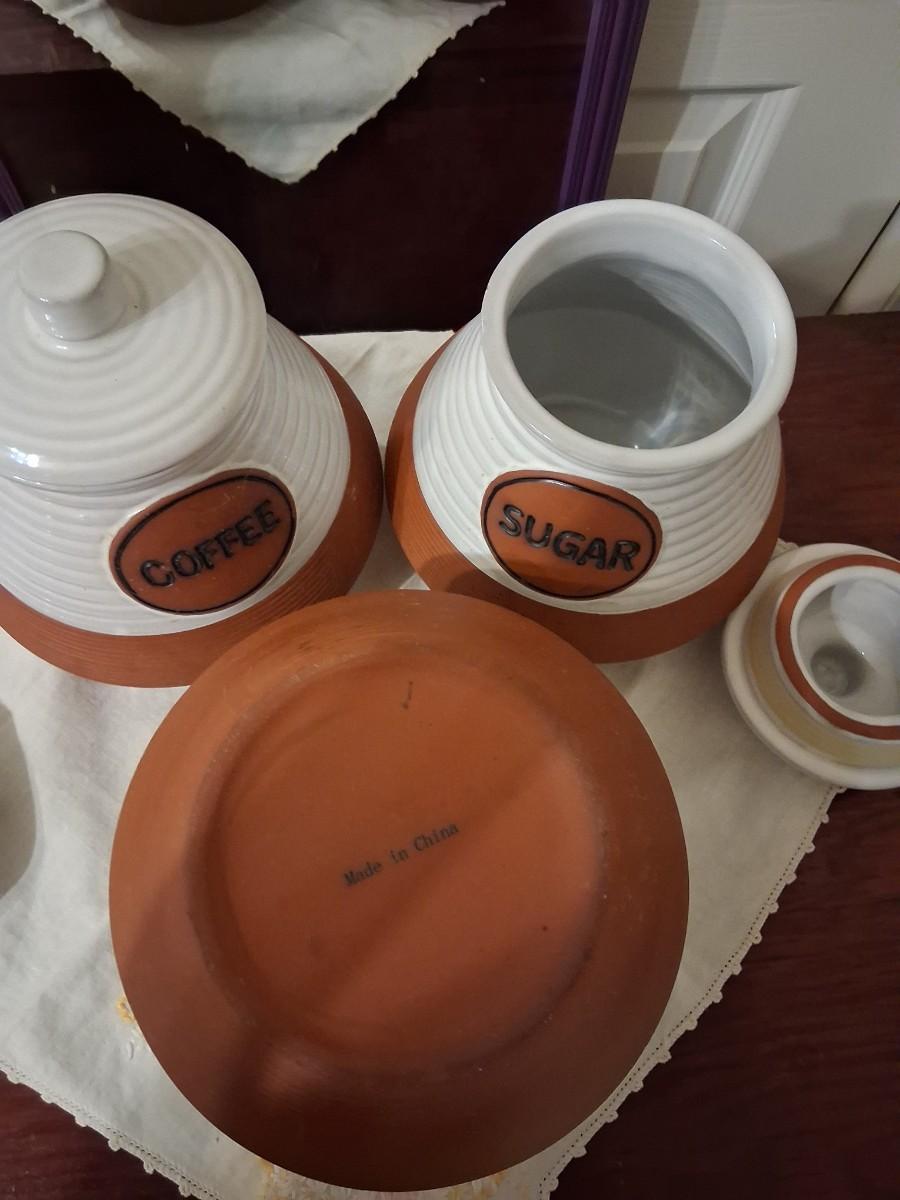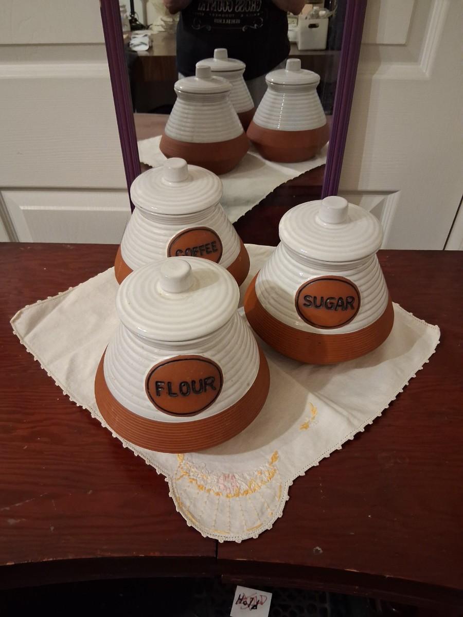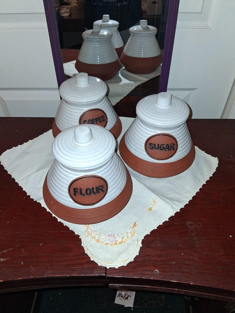 Like new beautiful Pottery Coffee Sugar & Flour Canisters