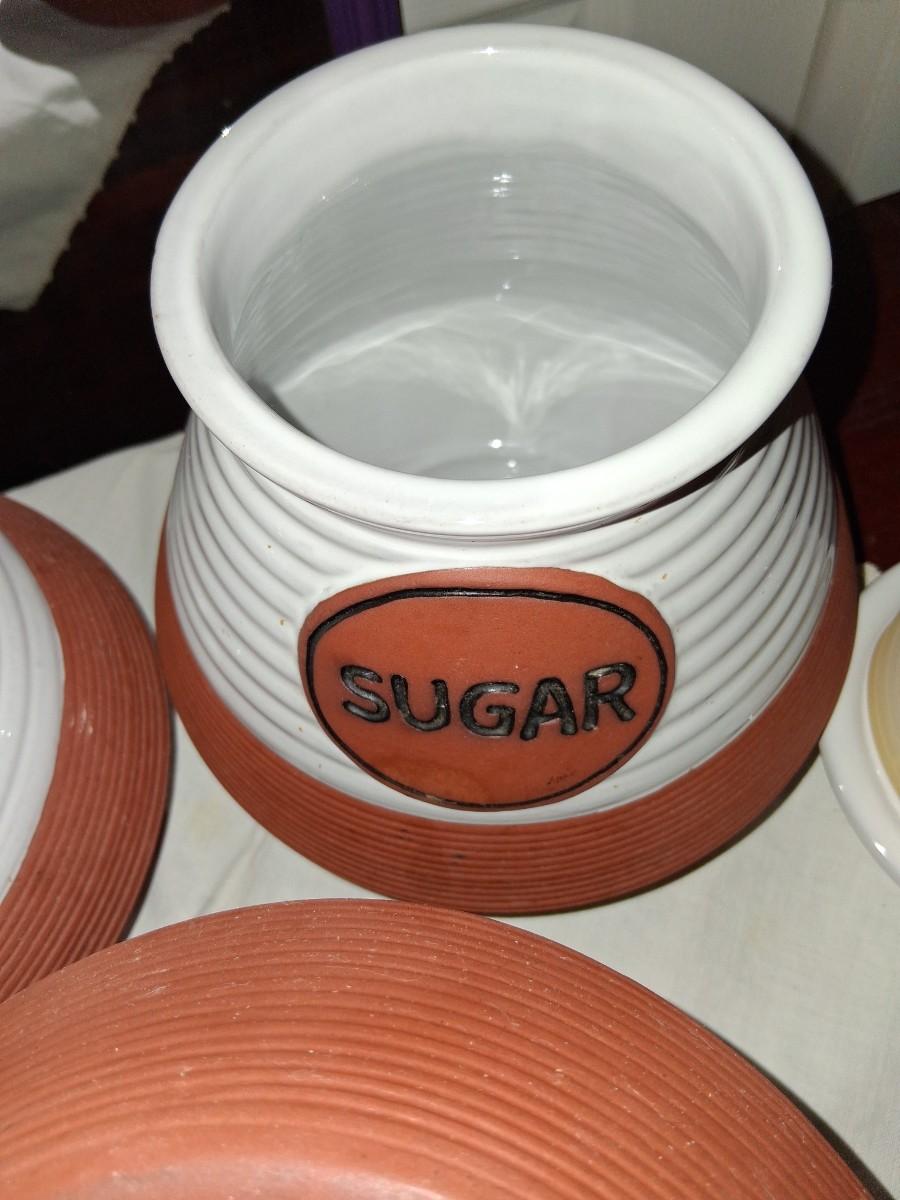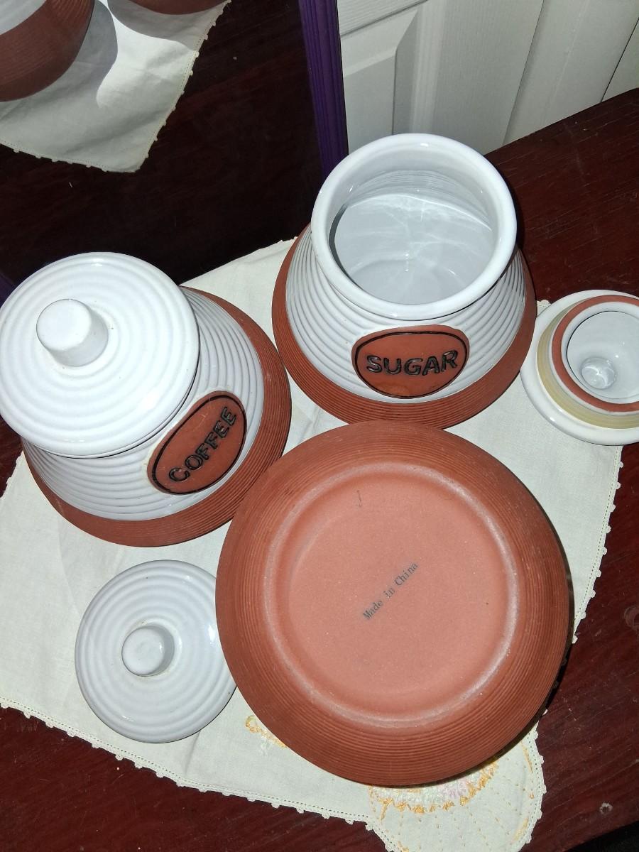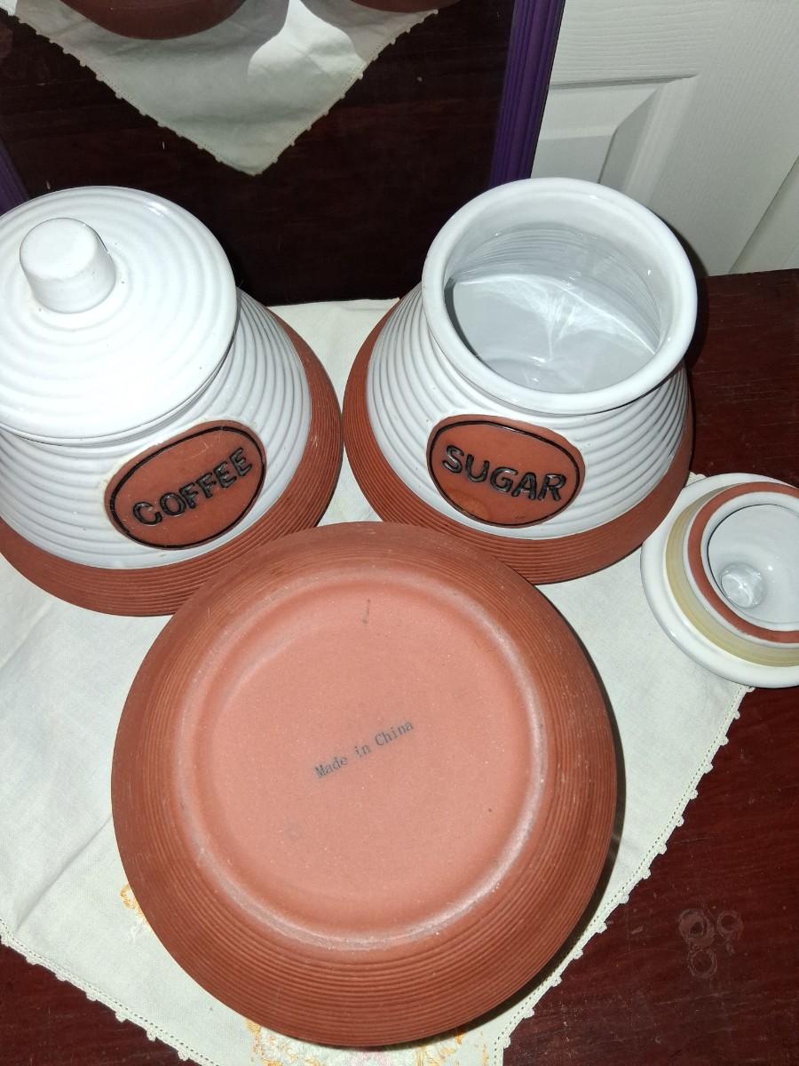 Like new beautiful Pottery Coffee Sugar & Flour Canisters