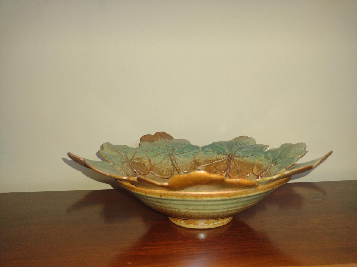Pottery Leaf Edge Bowl- Approx 11 1/4" in Diameter