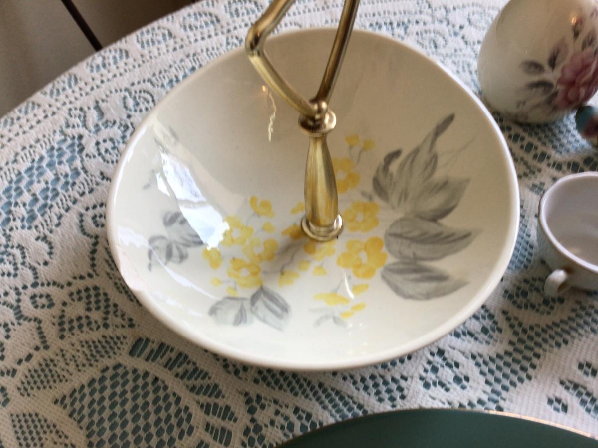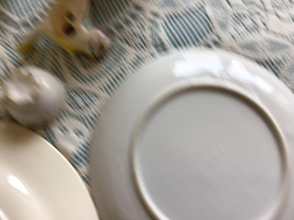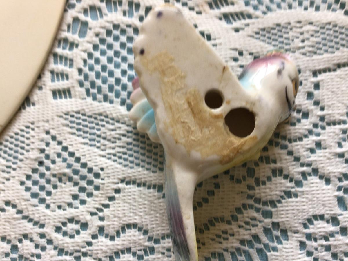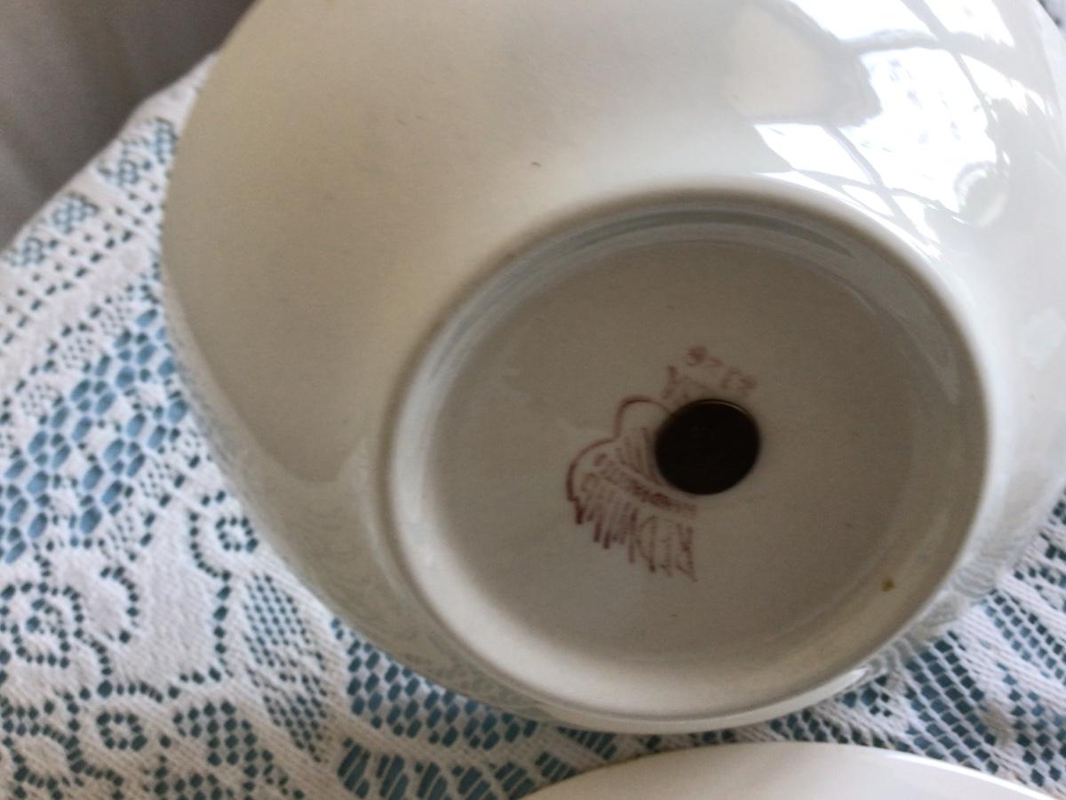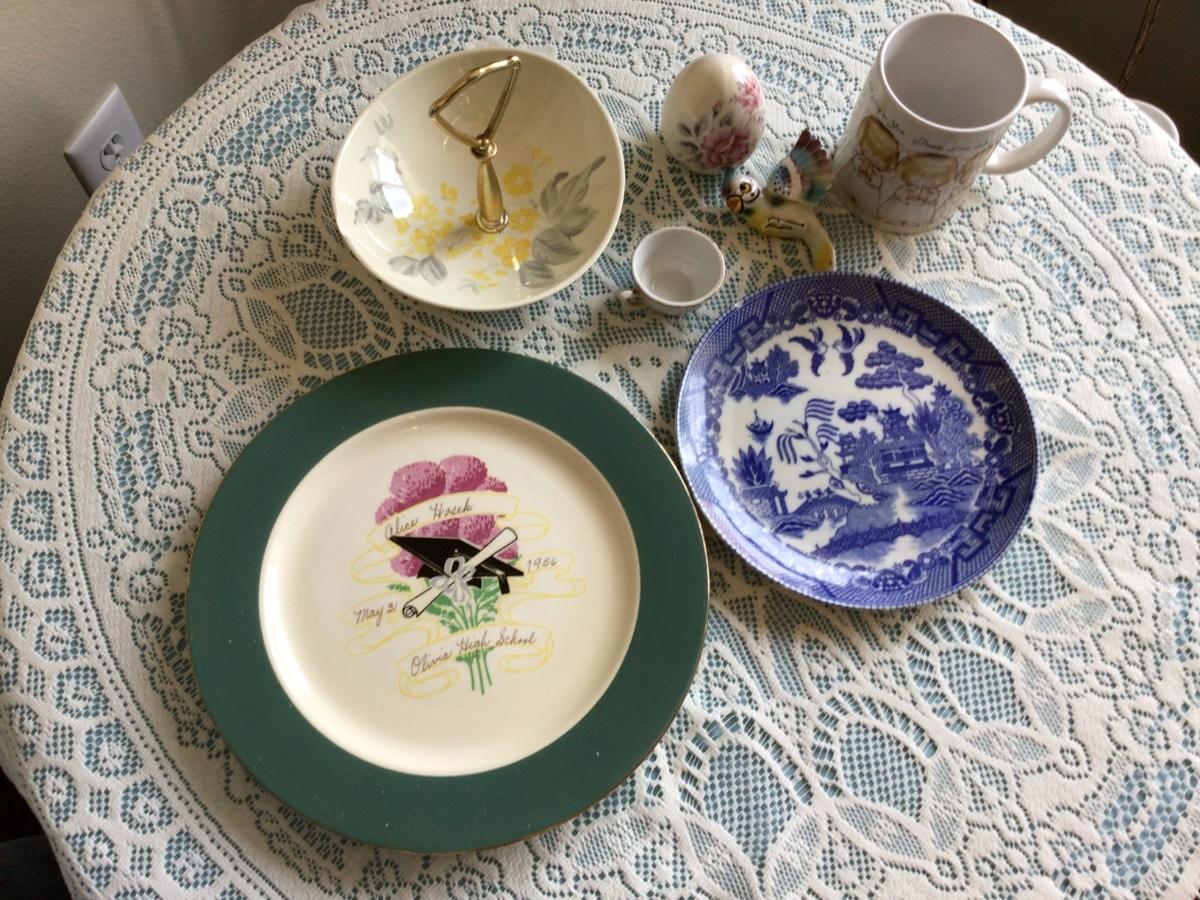 You get Red Wing condiment bowl (with chip). Two plates, egg, bird mug and mini tea cup.