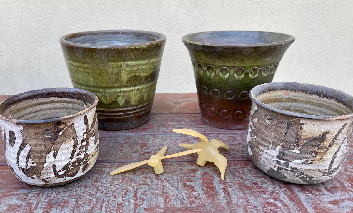 Pots Planters Mid Century Modern MCM Pottery lot green brown dripware