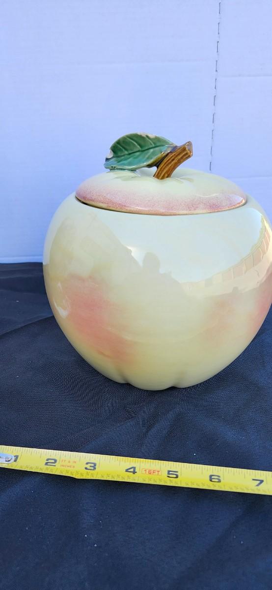 Vintage McCoy Blushing Apple Cookie Jar, Pottery, Yellow and Green