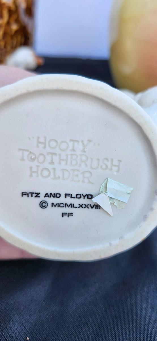 Hooty Owl Toothbrush Holder Fitz and Floyd Ceramic Owl Tree Vintage 1978