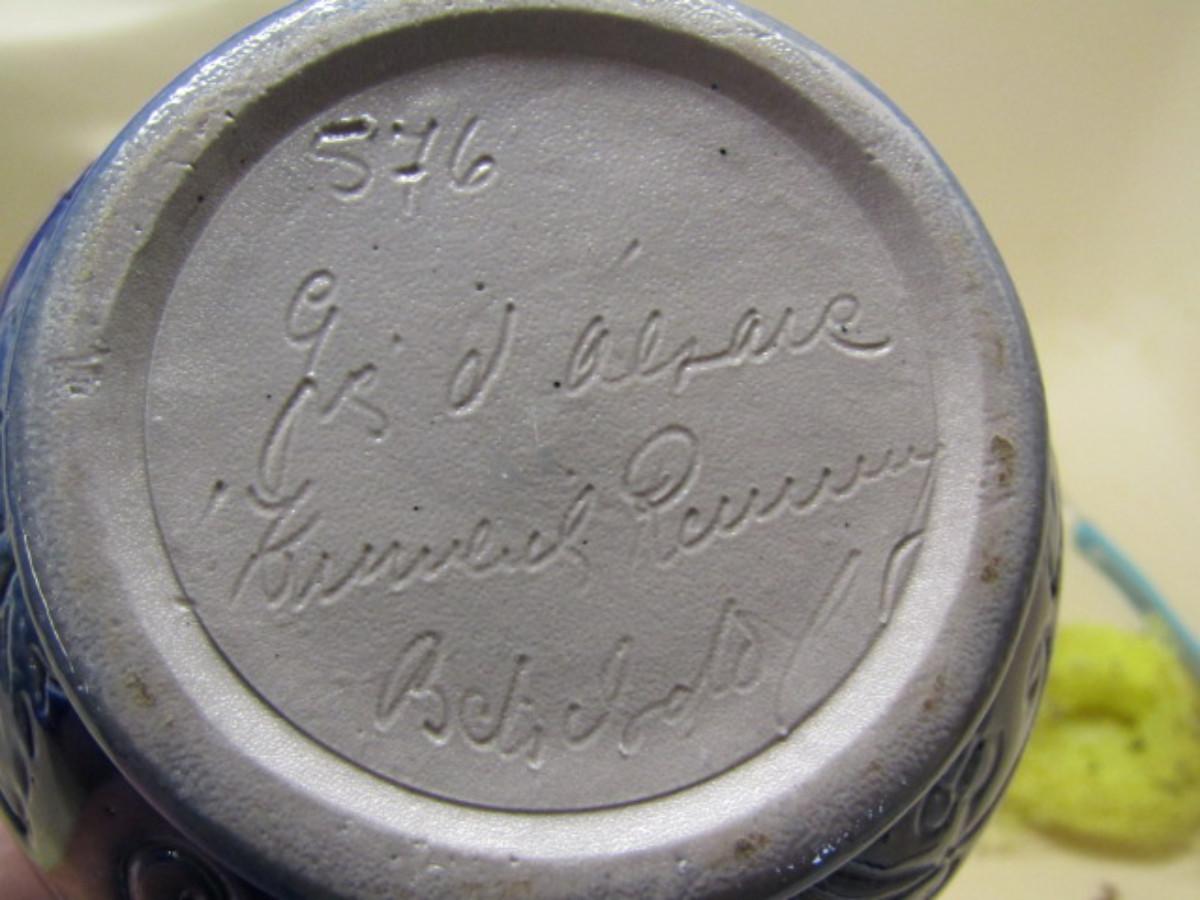 Pottery Pitcher- Grapes and Leaves Pattern- Signed by Artist