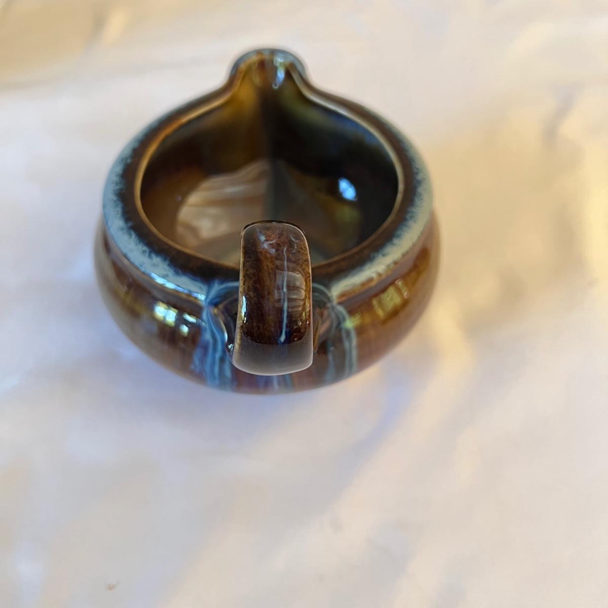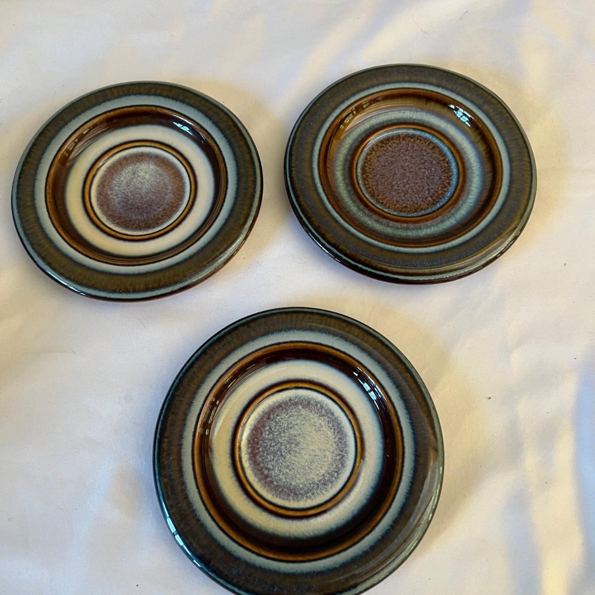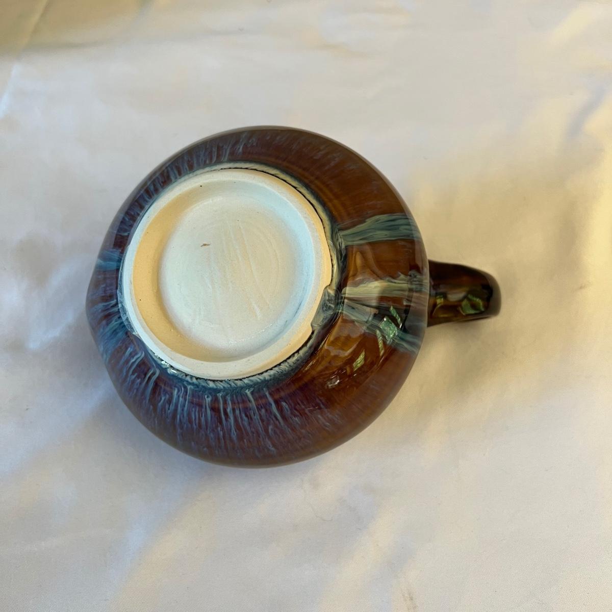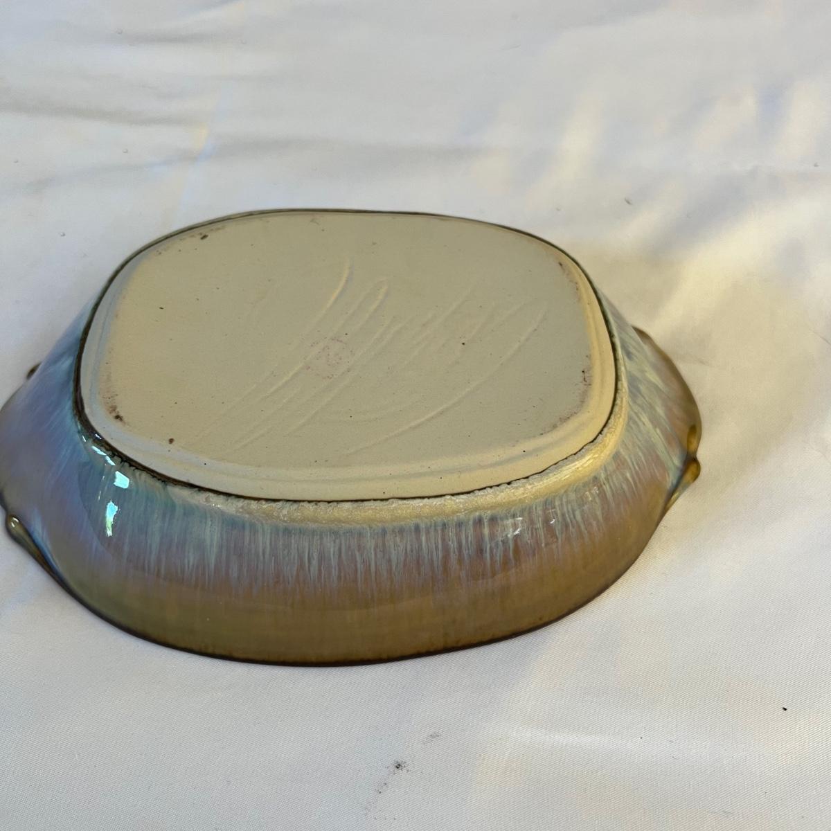 Eight piece set of serving pottery including three pitchers, three small plates, one serving bowl and one covered bowl. The three small plates measure 5.75”D. The smallest pitcher measures 5”D x 3.5”H, the medium pitcher measures 4.5”D x 3”H and the taller pitcher is approximately 5.5”D x 7”H. The serving plate is 7.75” x 5.5” x 1.75”H. Shipping available. Shipping can be costly. We suggest contacting our preferred local shipping provider, Postage Express, with dimensions and getting an estimate before bidding: (828) 670-5501 or postageexpress@yahoo.com.