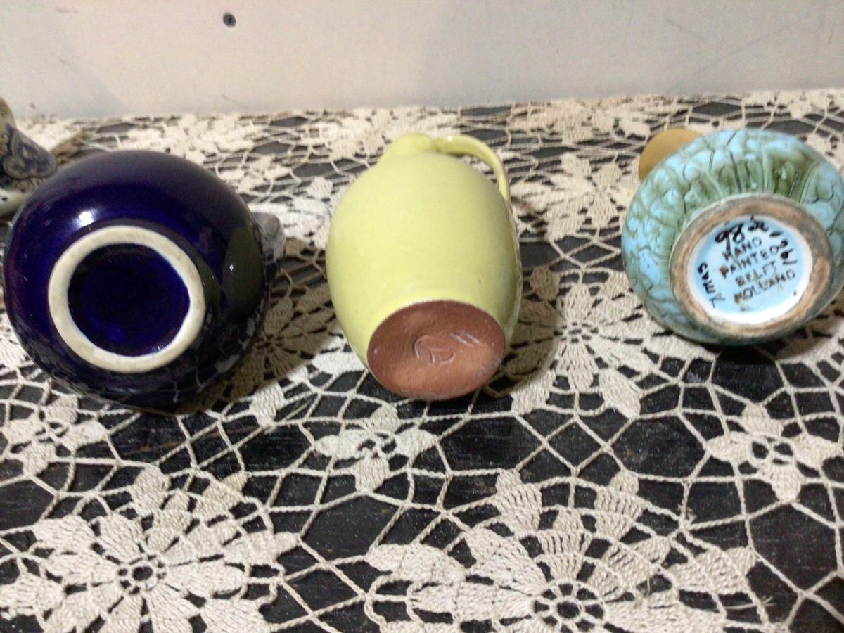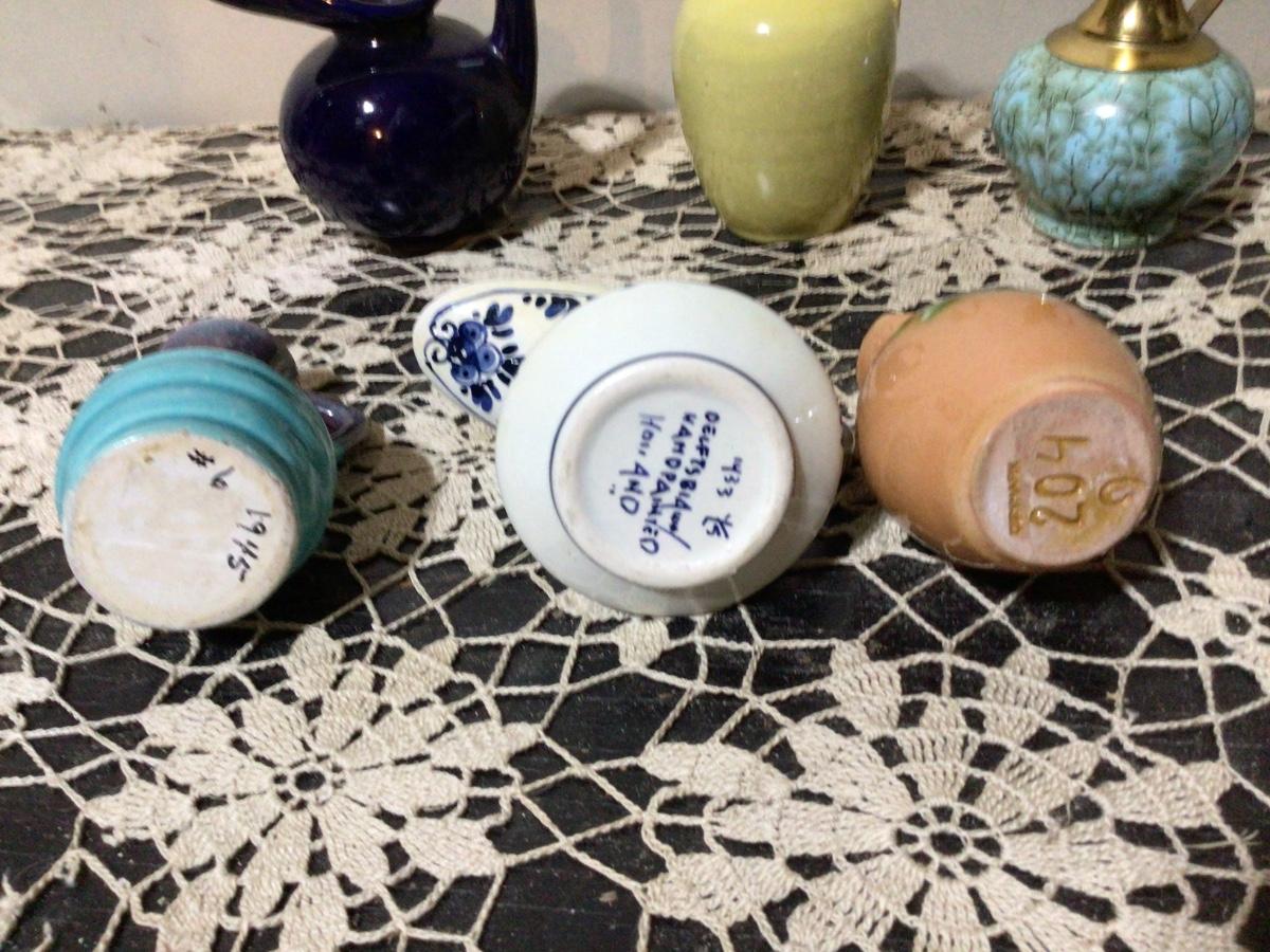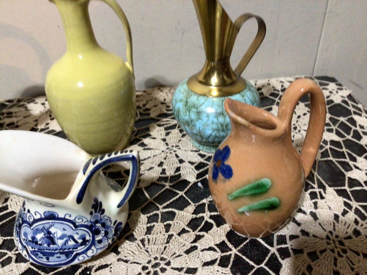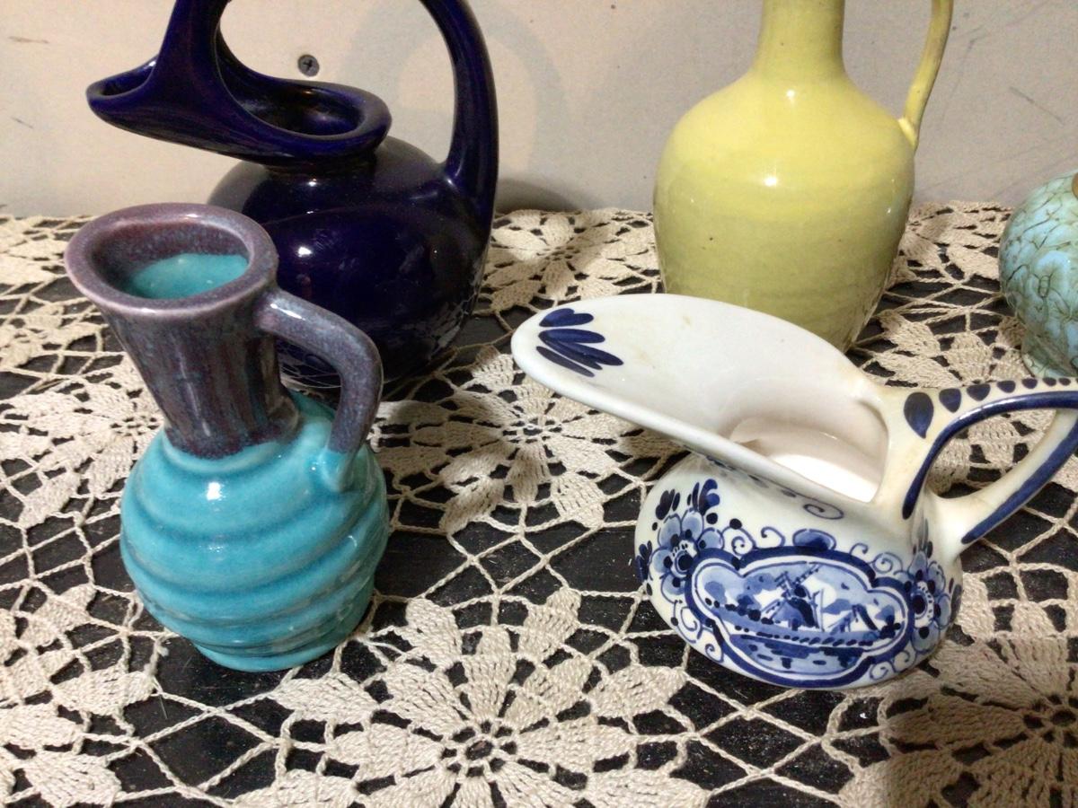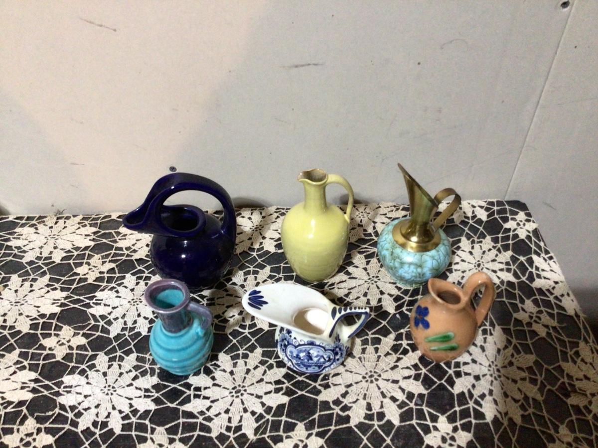 You get a variety of small pitcher. There is blue brass, Delft, blue USA, yellow Initiable, tan Denmark, blue 1945.