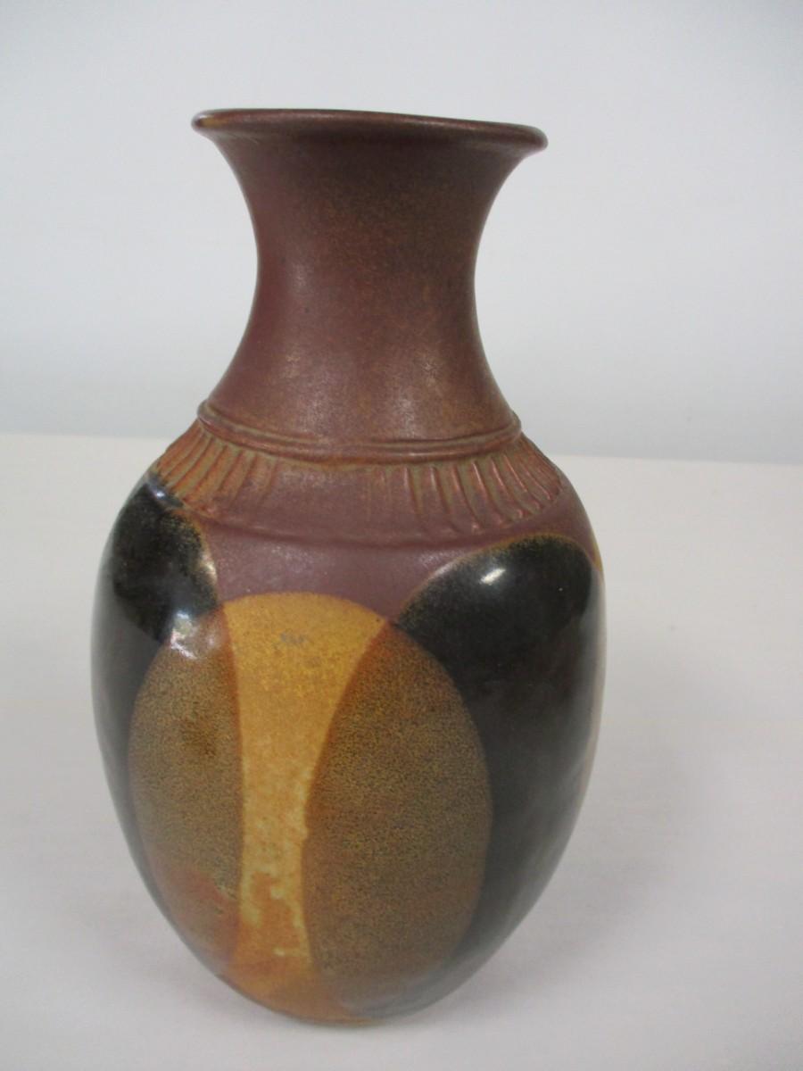 Mid-Century Pottery Craft Robert Maxwell Multi-Colored Pottery Vase