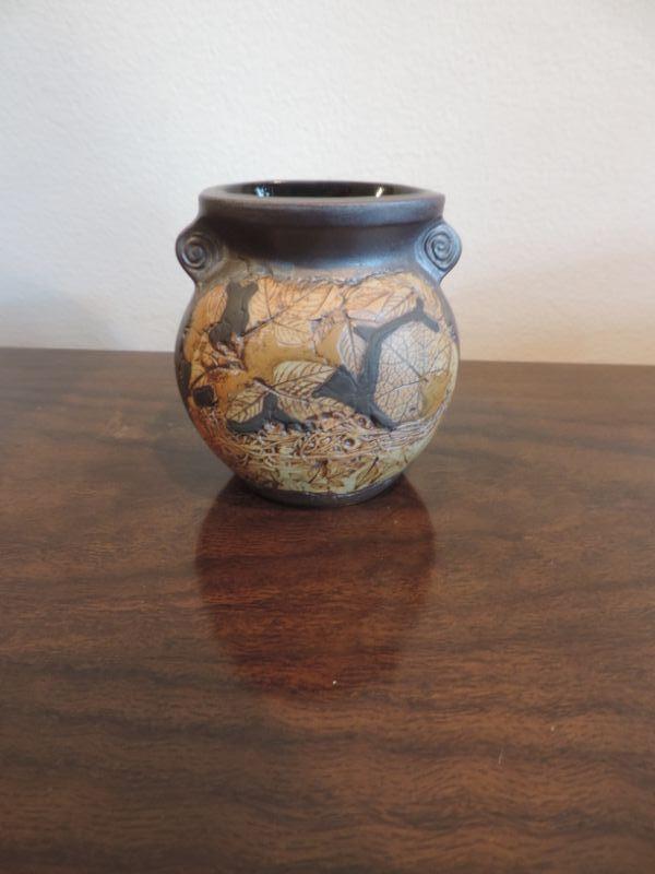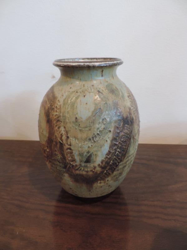 SMALL POT BY MALAYSIA KINDICRAFT AND VASE SIGNED ON BOTTOM MEASURES 9" TALL