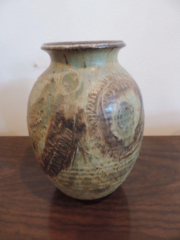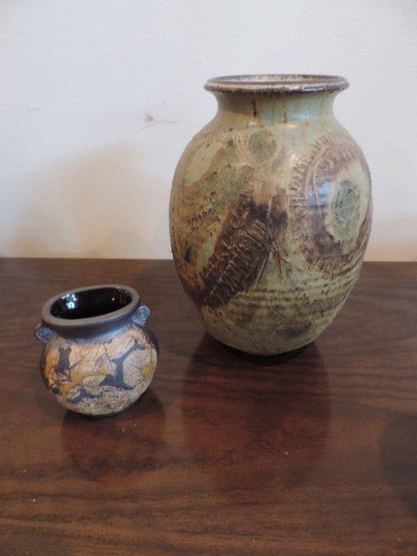 LOT 9  CLAY VASE AND SMALL CLAY POT