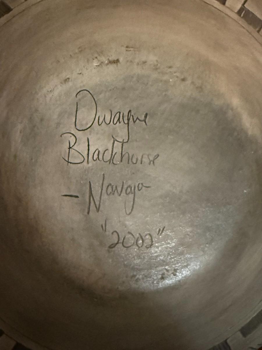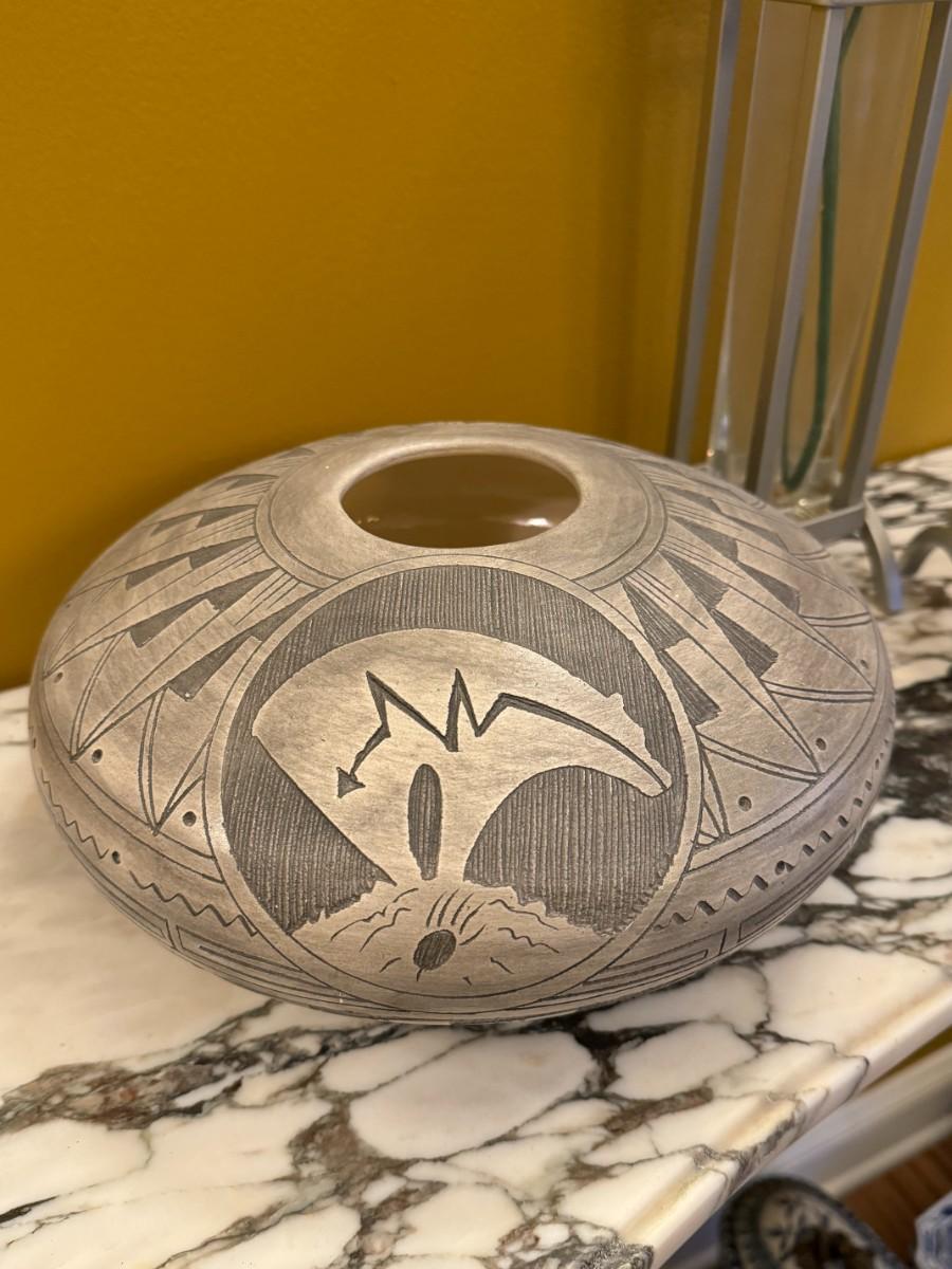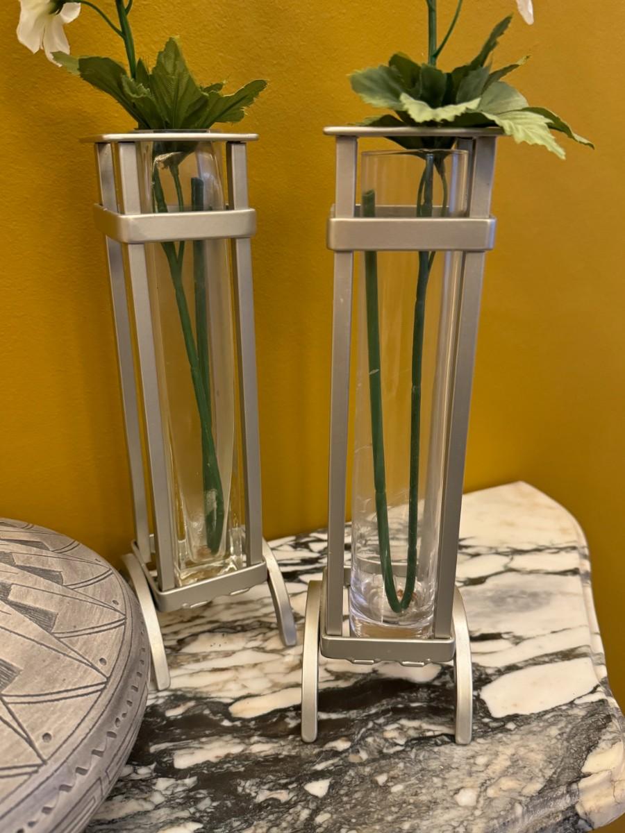 Pottery Vase by Dwayne Blackhorse w/ Mid-Century Modern Chrome Vases