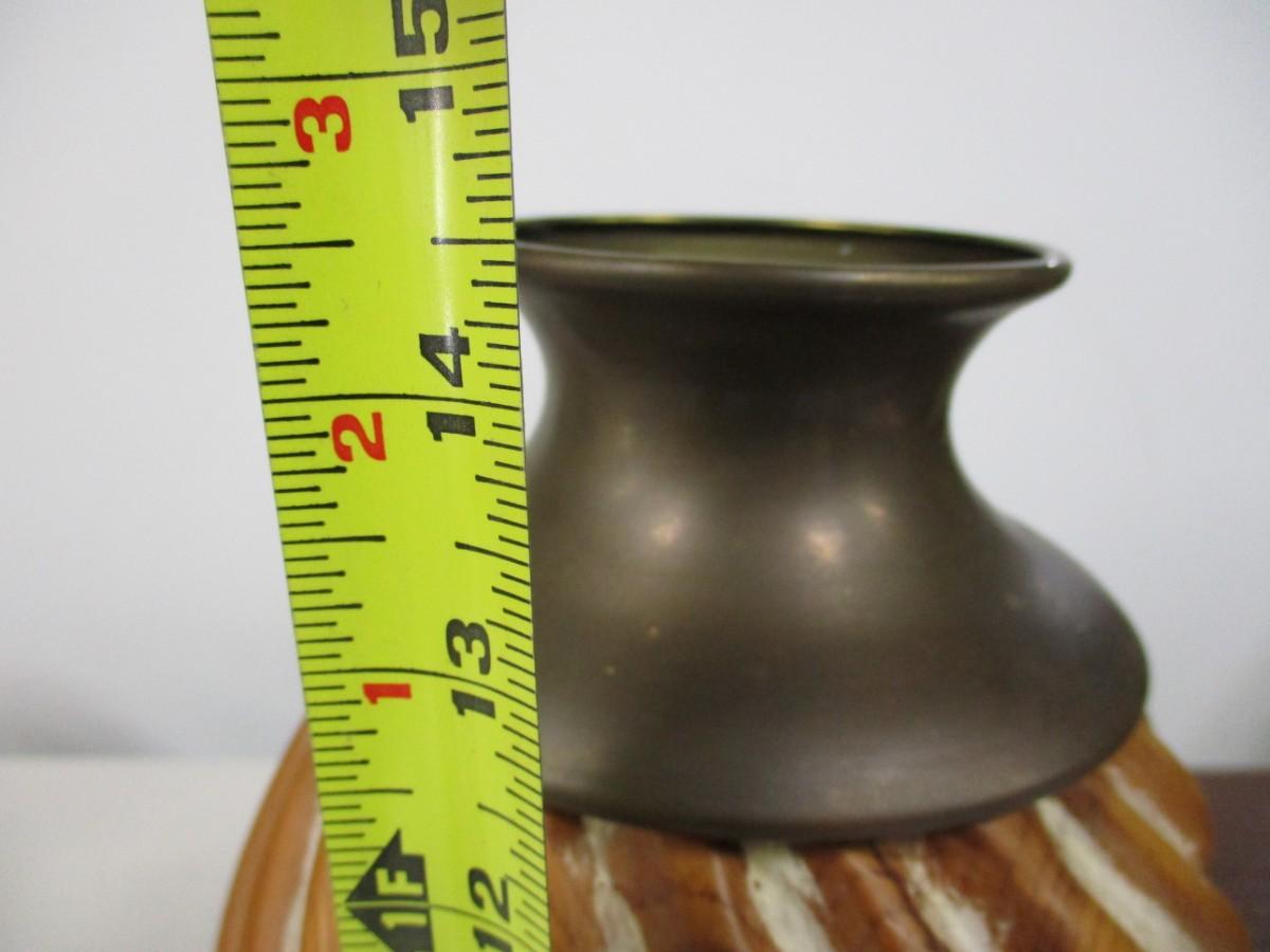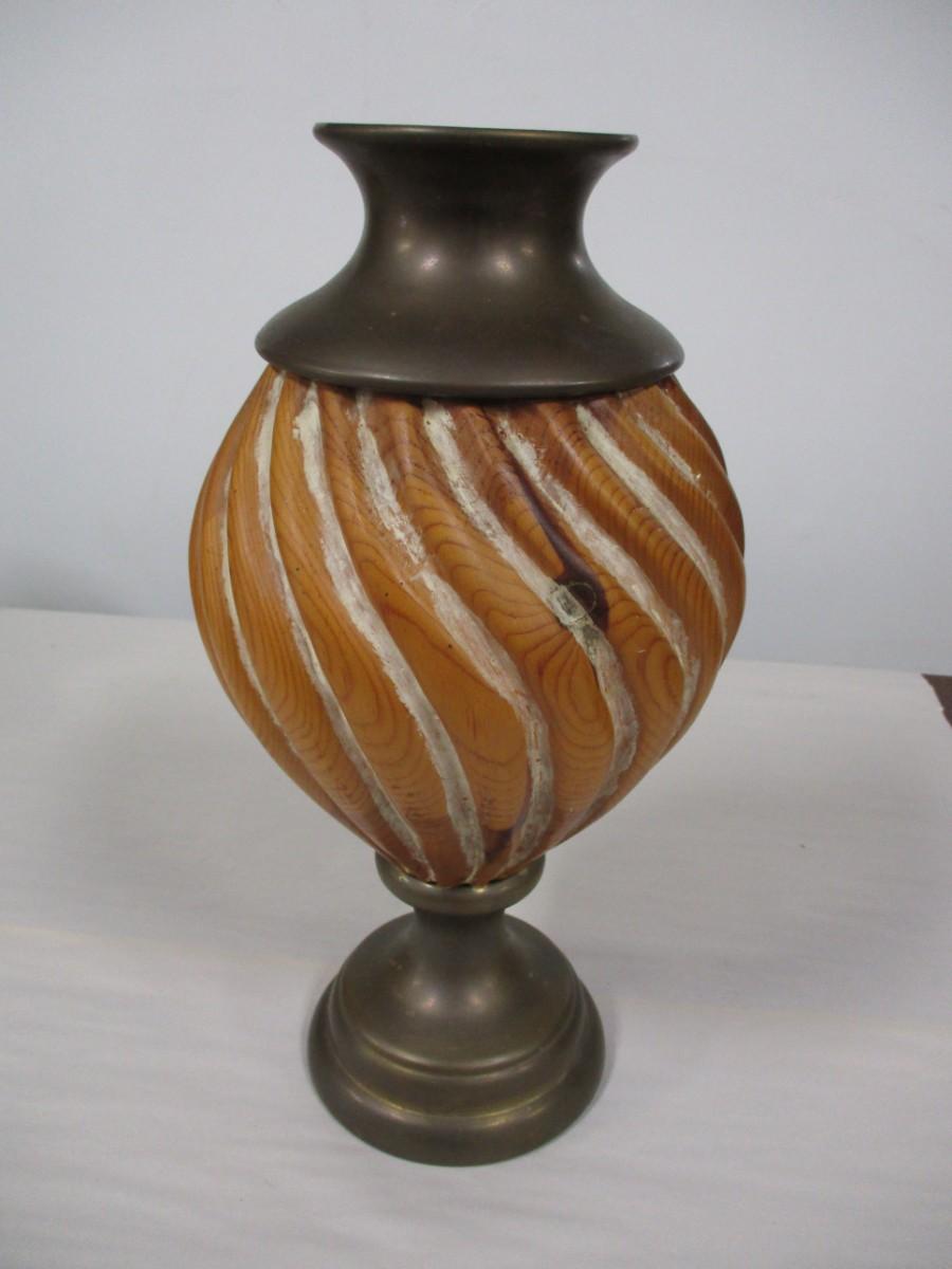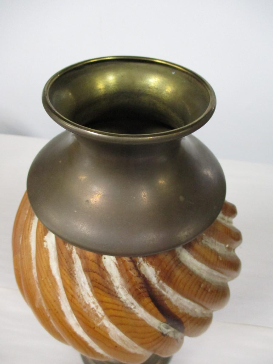 Pottery Vase With Brass Top & Bottom