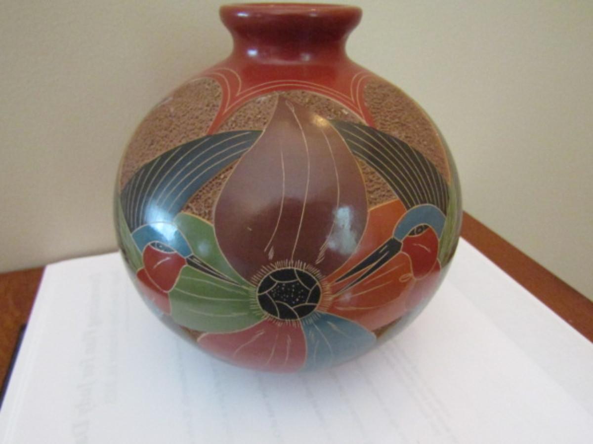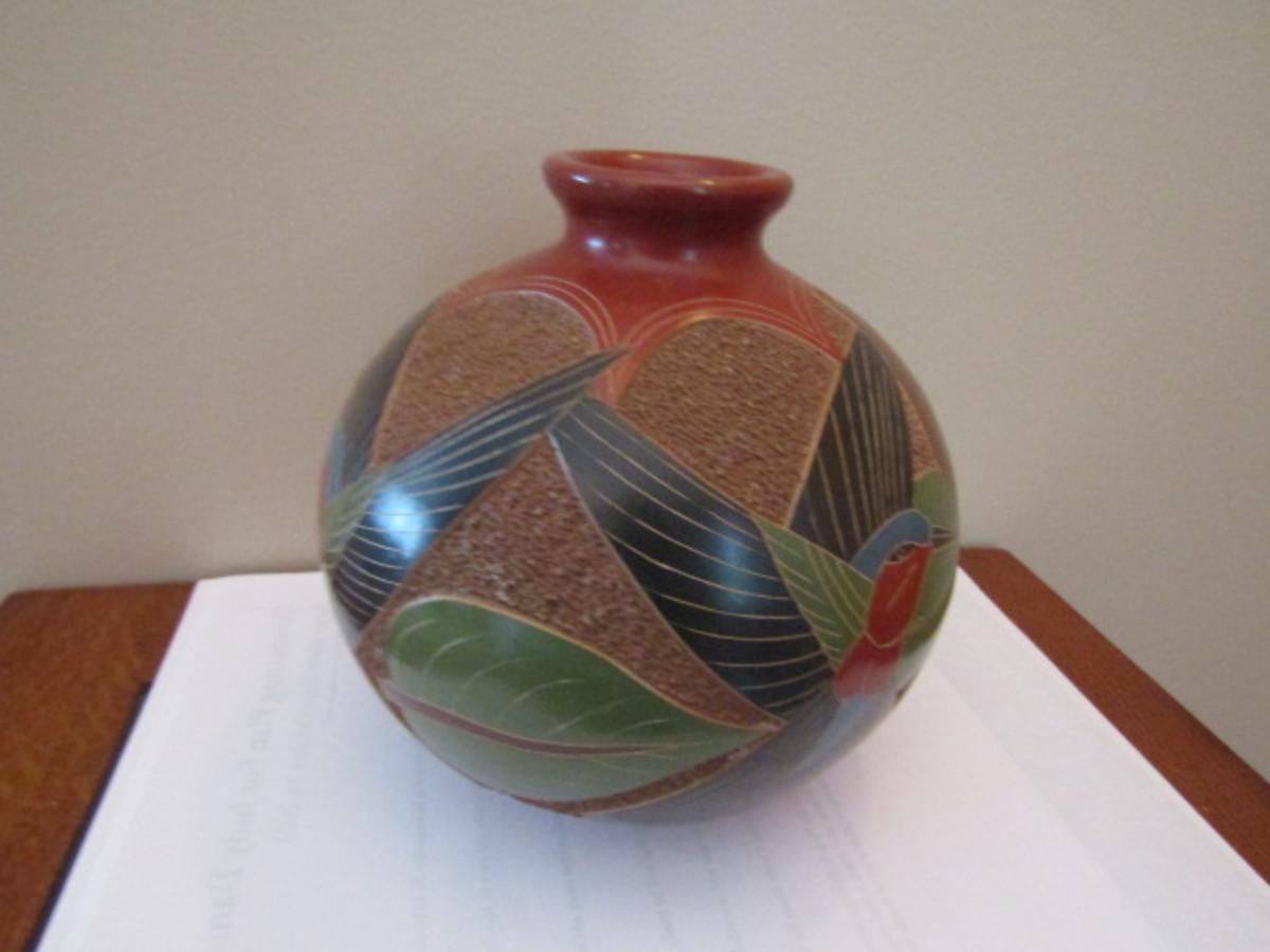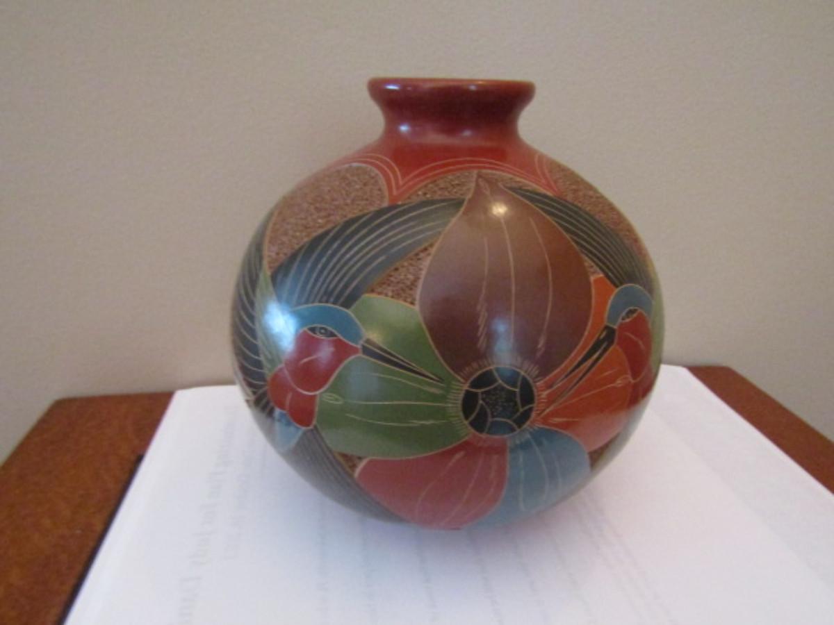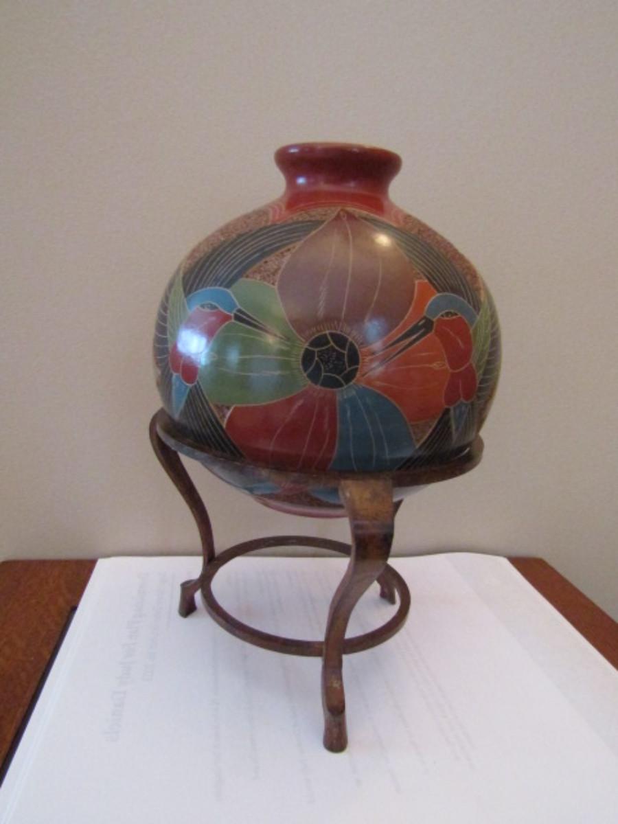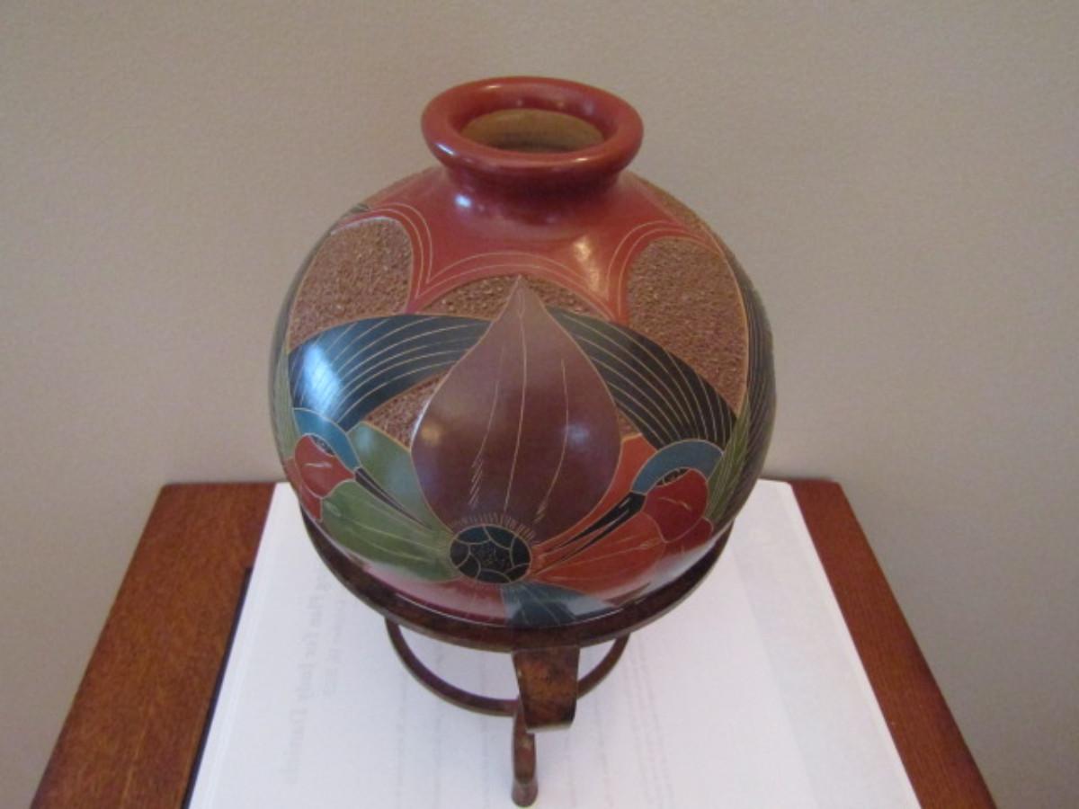 Pottery Vase with Metal Stand- Possible Roger Calero- Approx 6 1/4" Tall