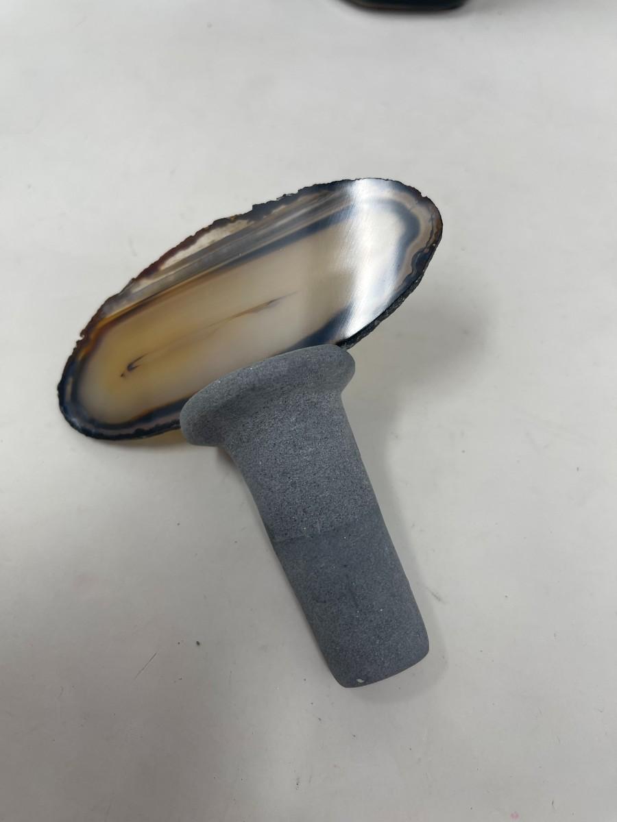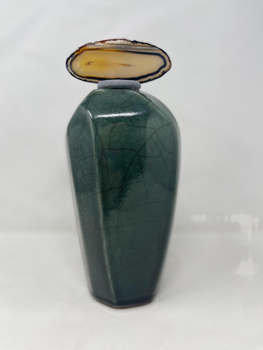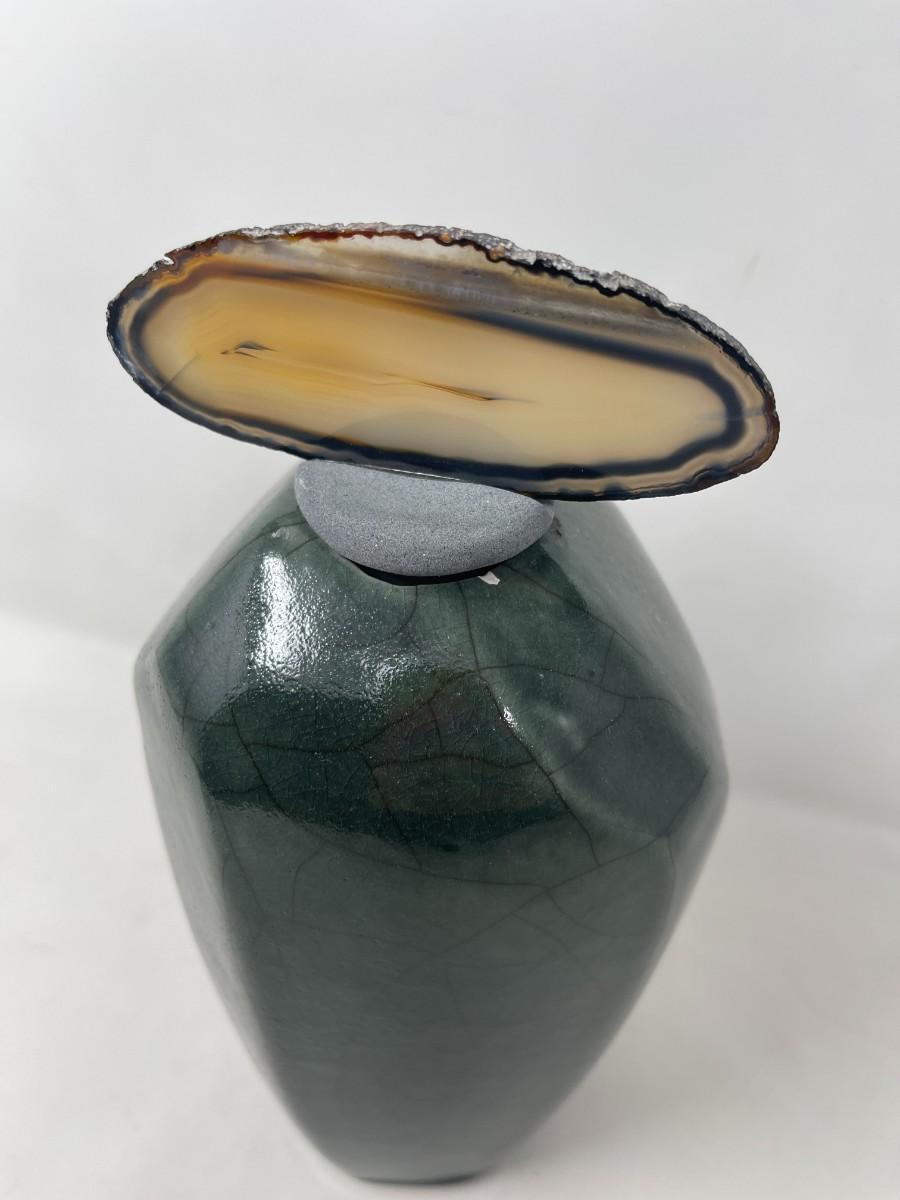 Pottery Vessel with Agate Geode Slice Stopper, Signed