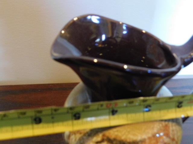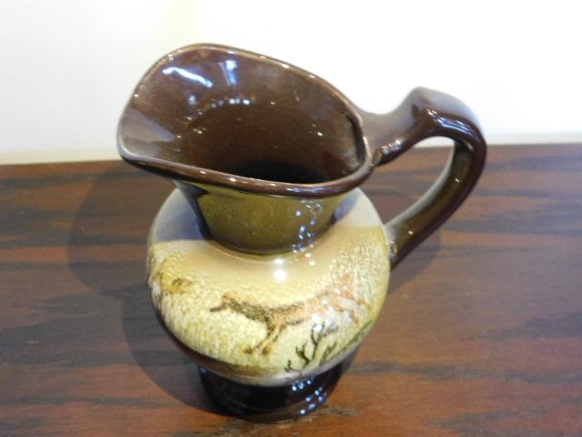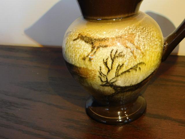 Pottery Water Pitcher with Hand Painted Primitive Cave Art Animals 7"