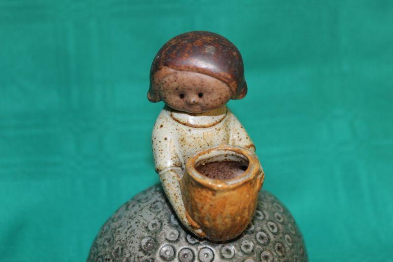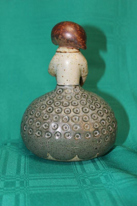Pottery woman figurine. Wide bottom. No signature or maker mark. Great detail design.