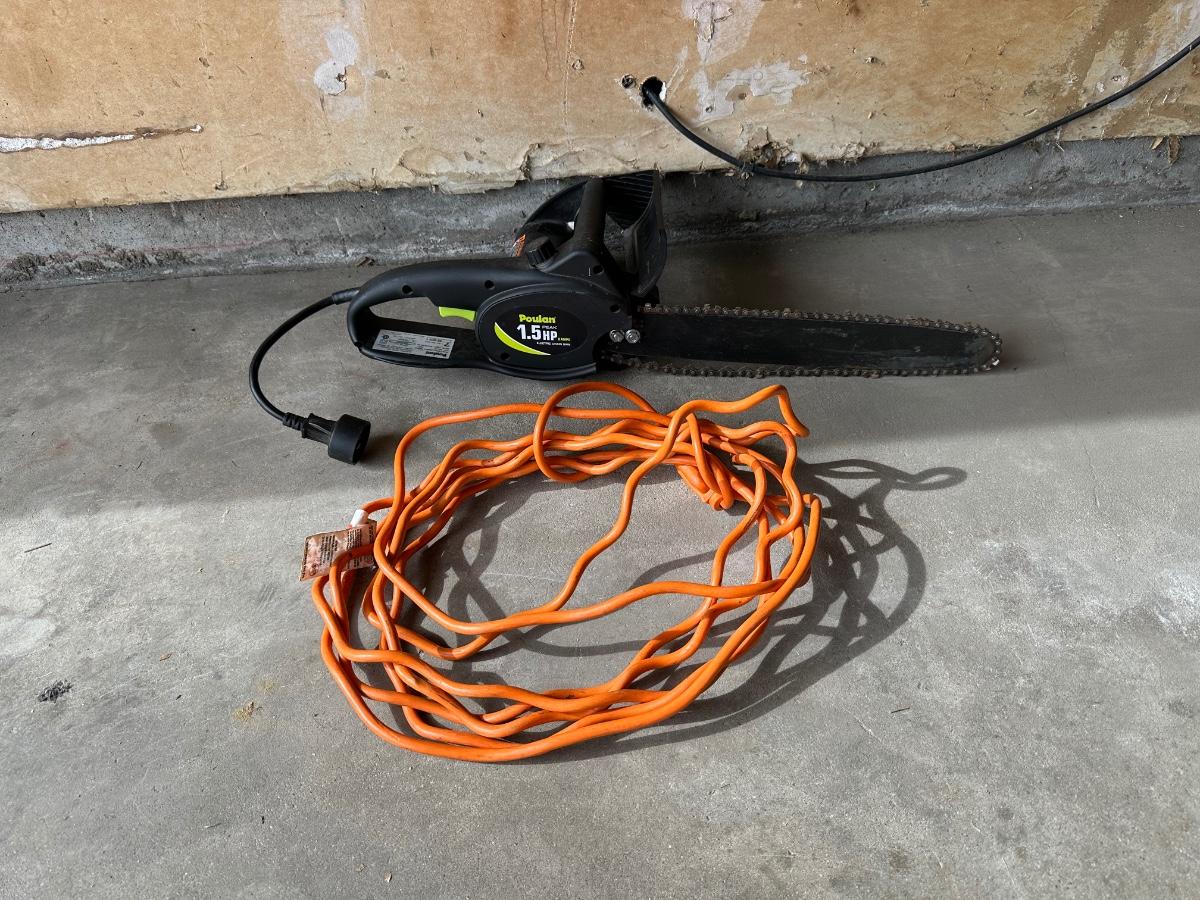 POULAN 1.5HP 14” ELECTRIC CHAINSAW WITH EXTENSION CORD