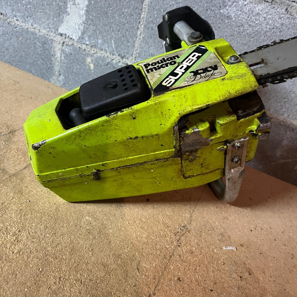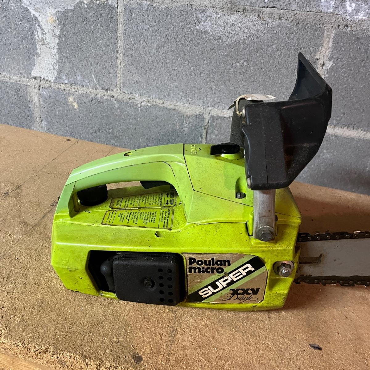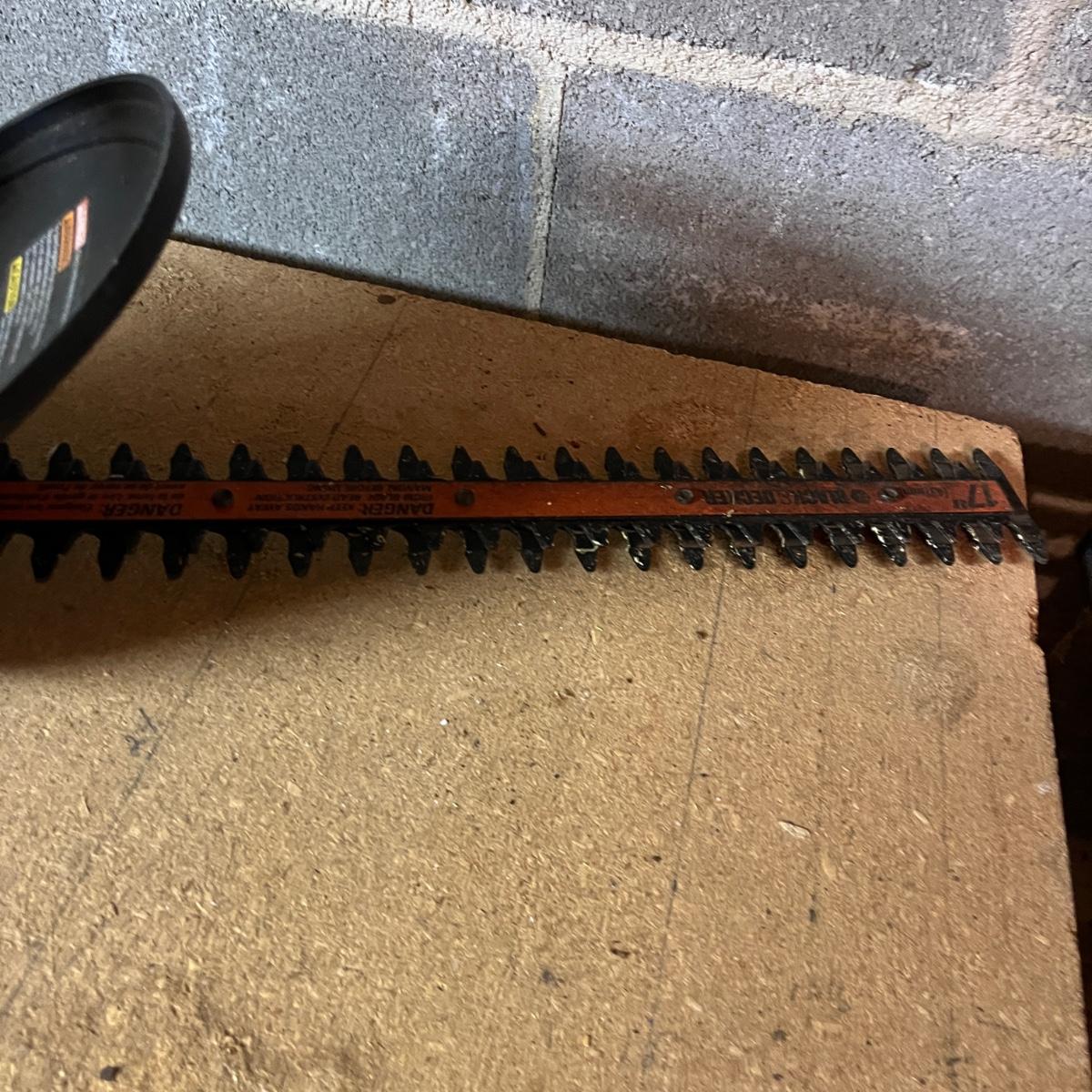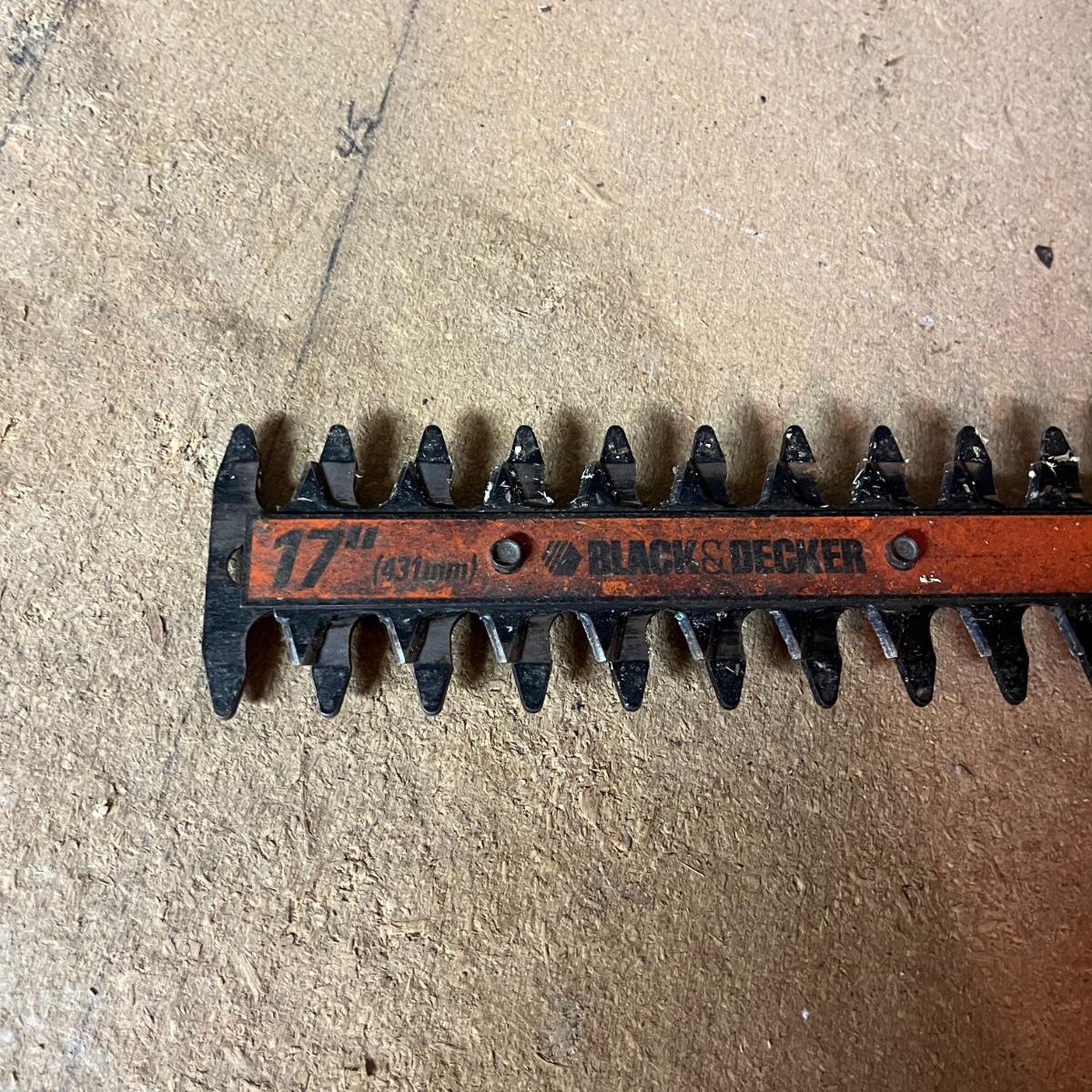 Lot includes a Poulan gas chainsaw with 16” bar, gas Poulan blower and a Black & Decker electric hedge trimmer that powered on when plugged in. Both gas machines do not have gas but turned over when cord was pulled.