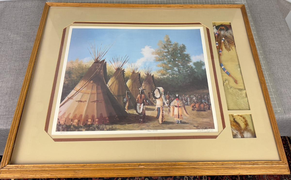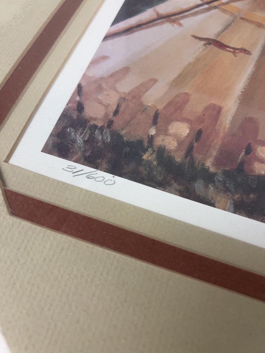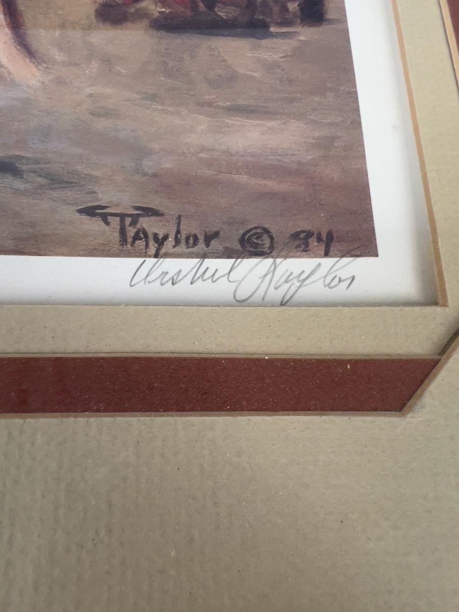 Famed and Matted Under Glass, Artist is Taylor. Coming Loose in the Frame. Measures 35 x 28" Additional fee for crating and shipping.
