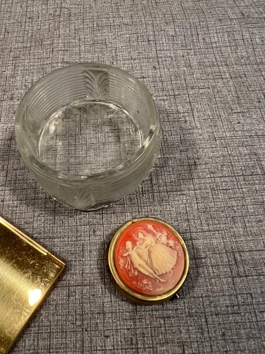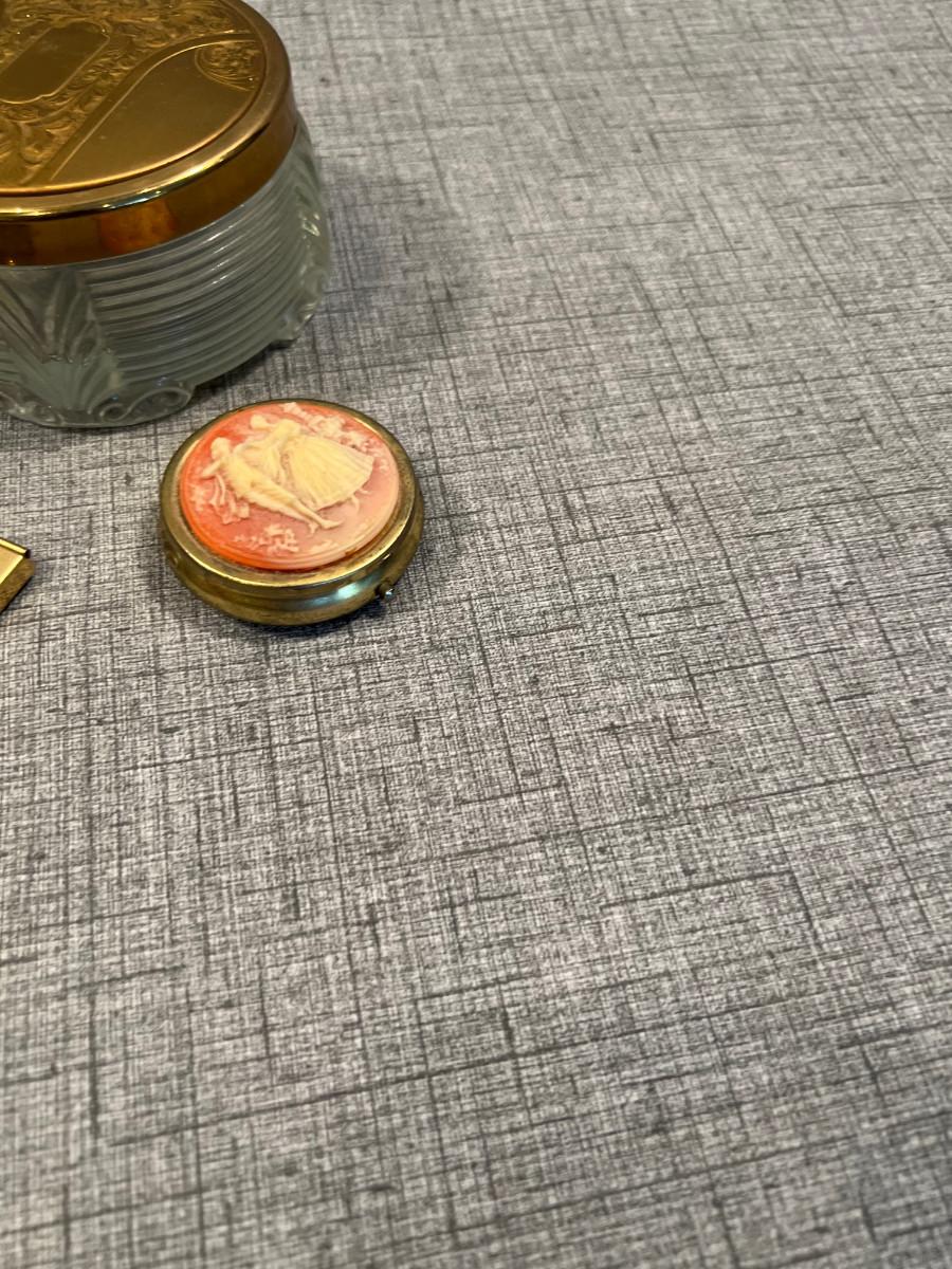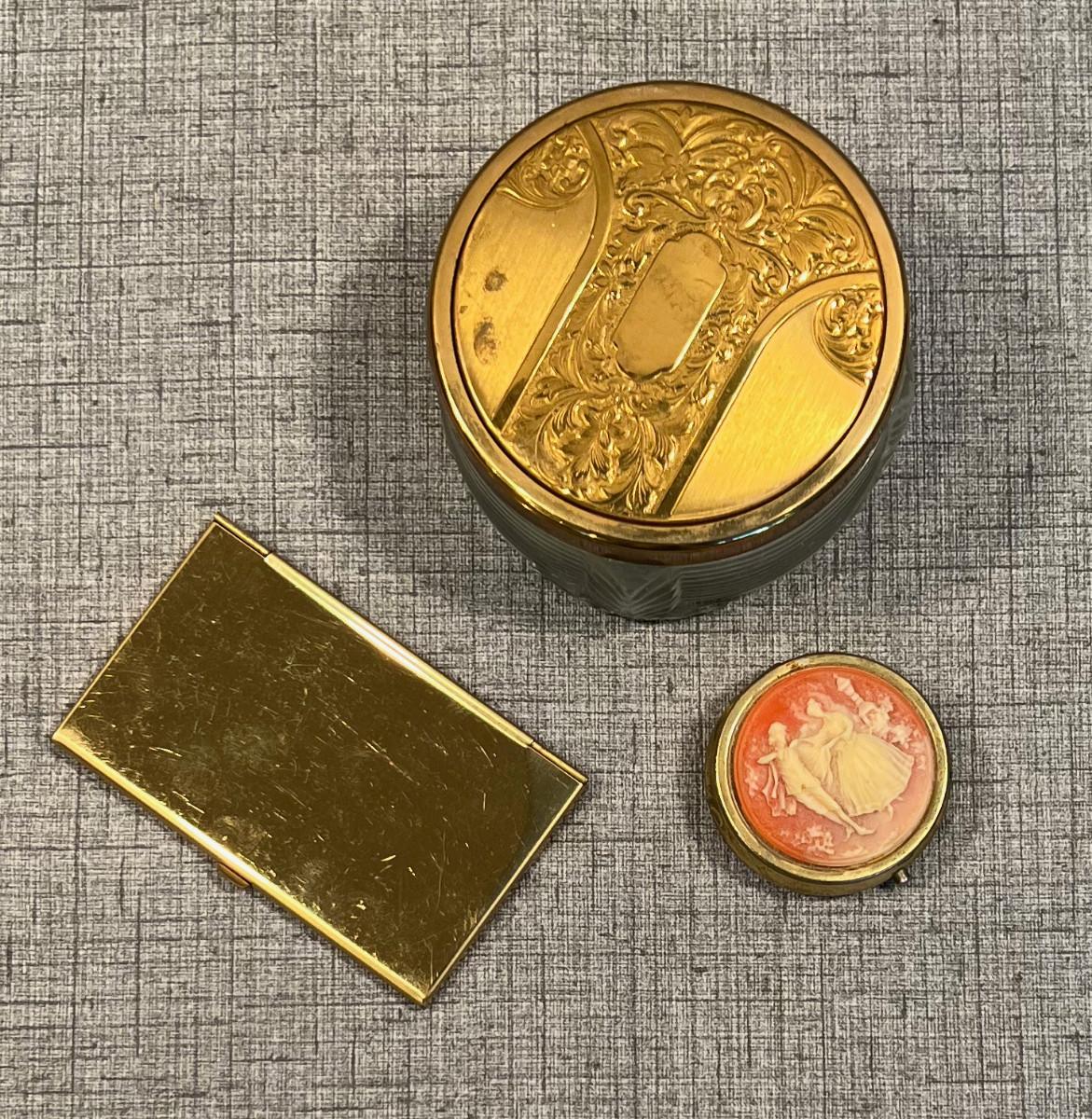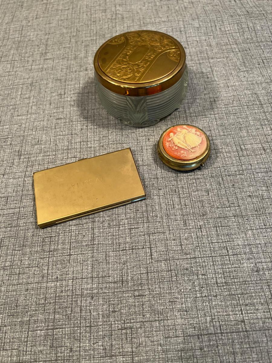 Powder Jar, Compact and Card Holder, Gold Toned