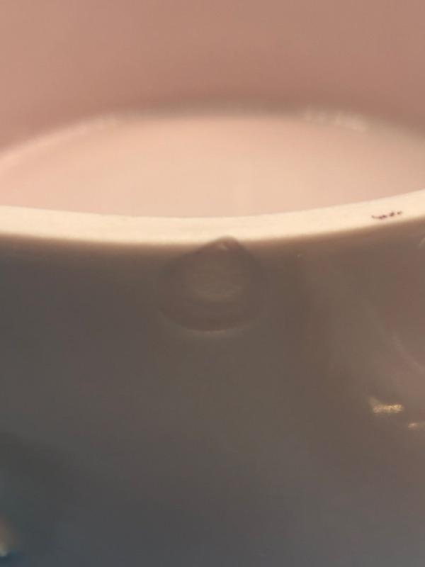 In good shape, but there is a small rough spot along top edge of bottom part that appears to be a repair spot.