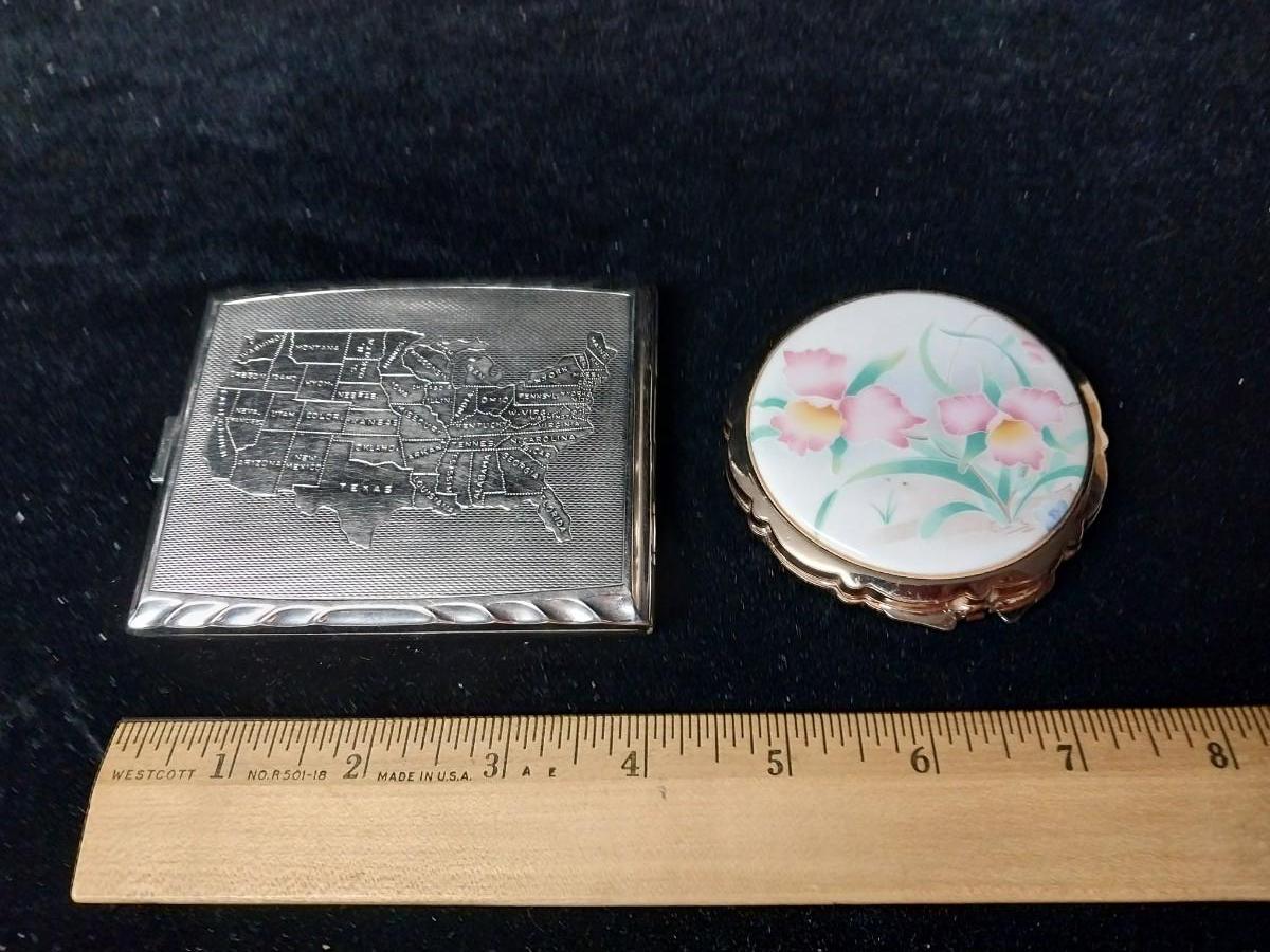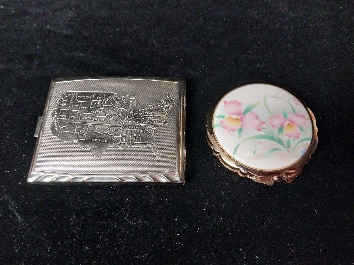 POWDER W/MIRROR COMPACT AND AN ENGRAVED CIGARETTE HOLDER