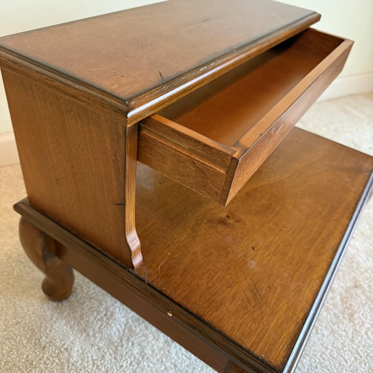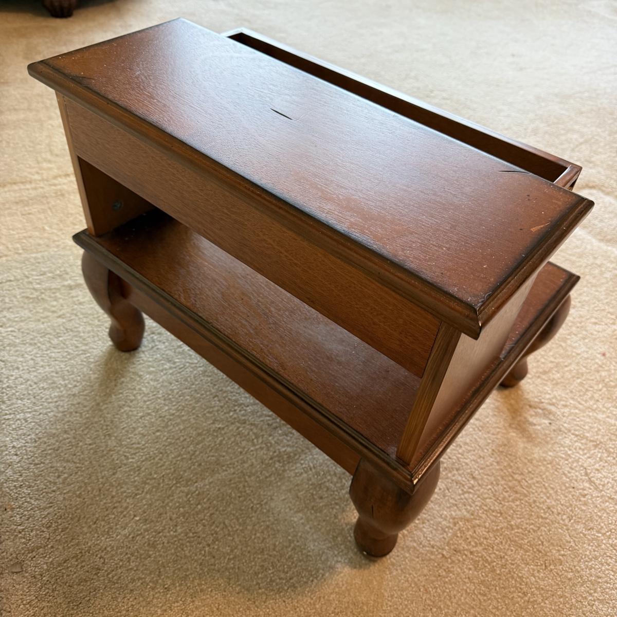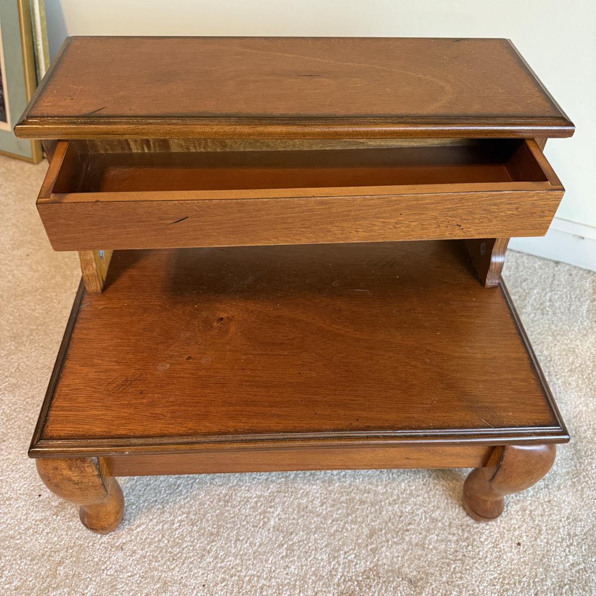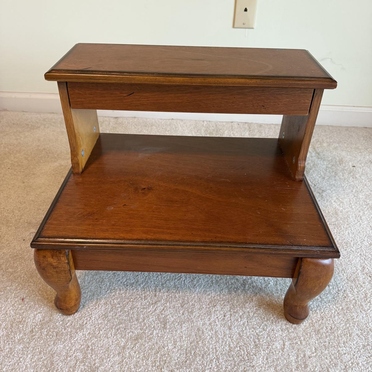 This lot contains a wooden Powell Attic bed steps. This little step ladder has two steps and the top step has a little drawer. This item measures 19” x 15” x 16”H.