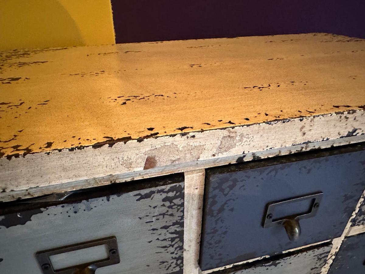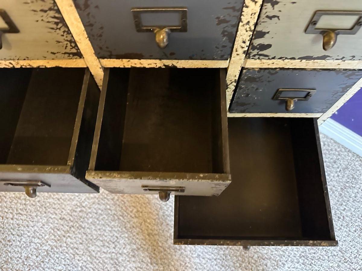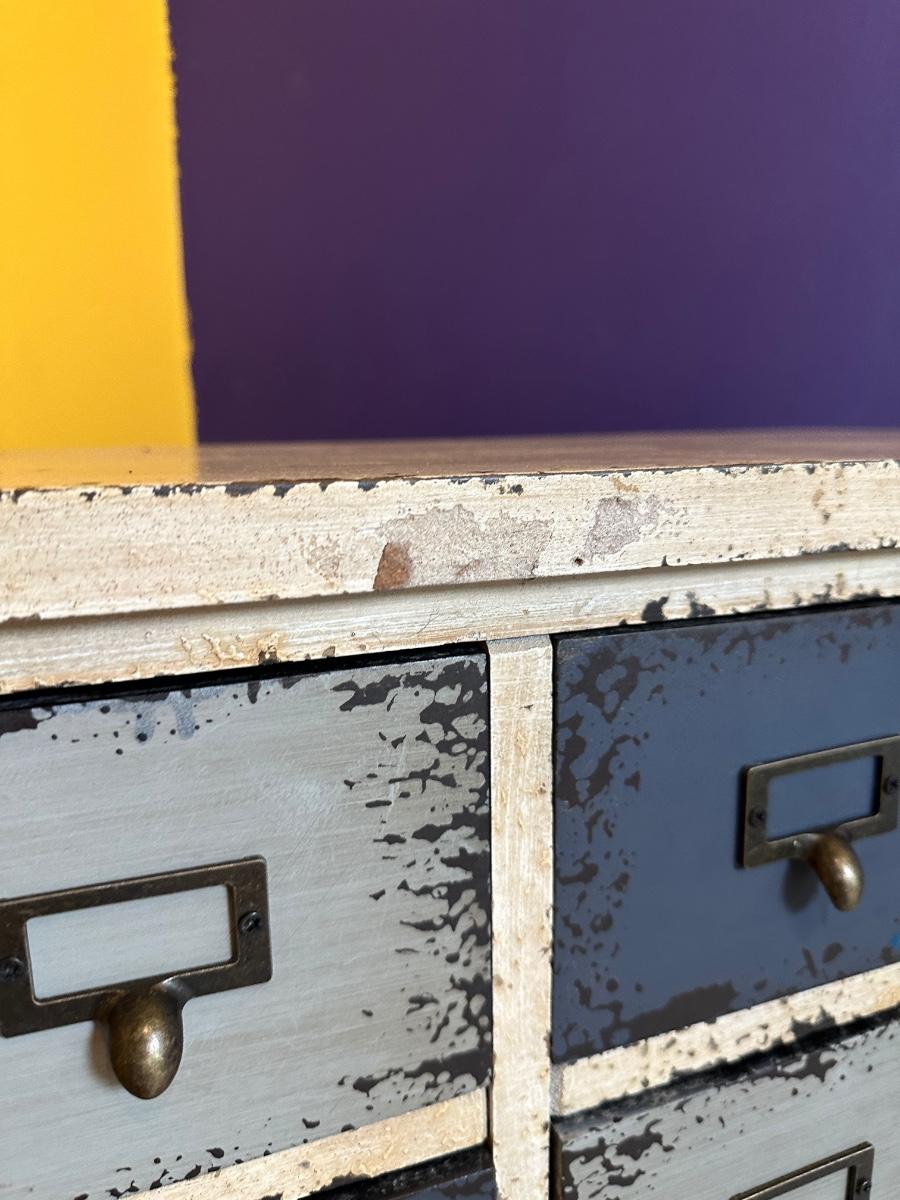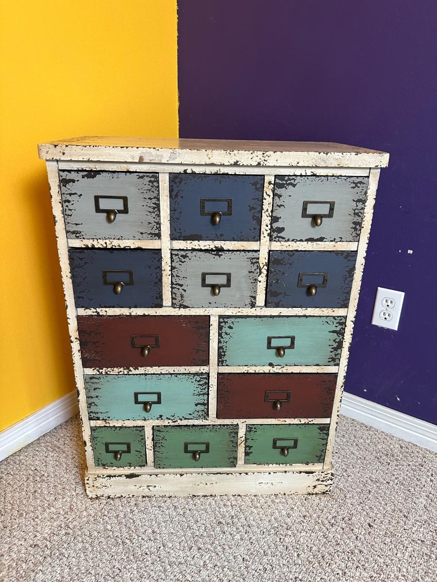 Colorful storage chest by Powell (model 990-333T2, manufactured 2012).