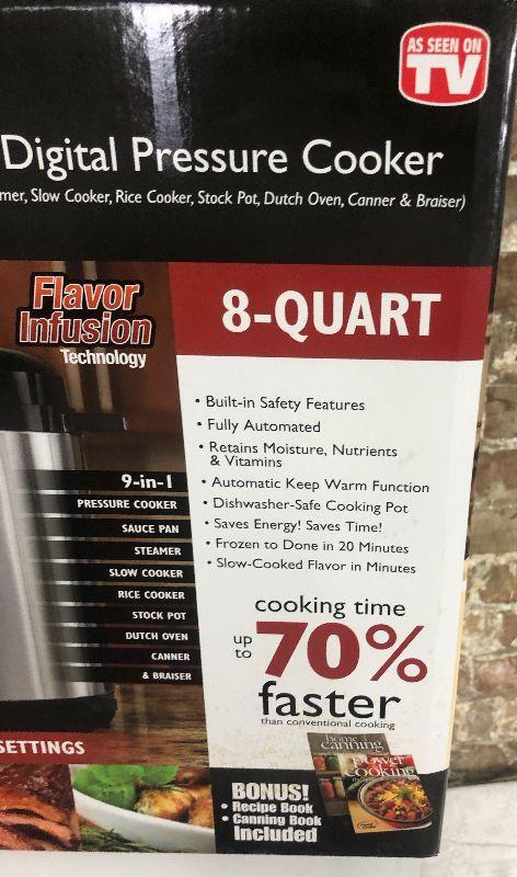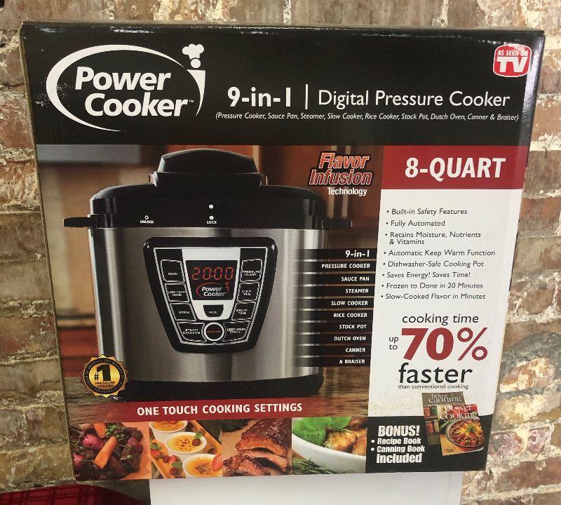 One touch settings..8-Quart..Fully automated..Dishwasher safe Cooking Pot...POWER COOKER 9-IN-1 Digital Pressure Cooker..New in the box...