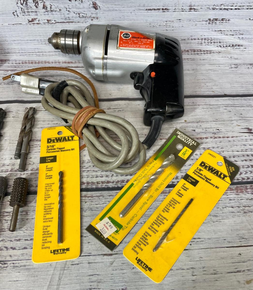 Black and Decker Corded Power Drill and Bit Accessory Lot