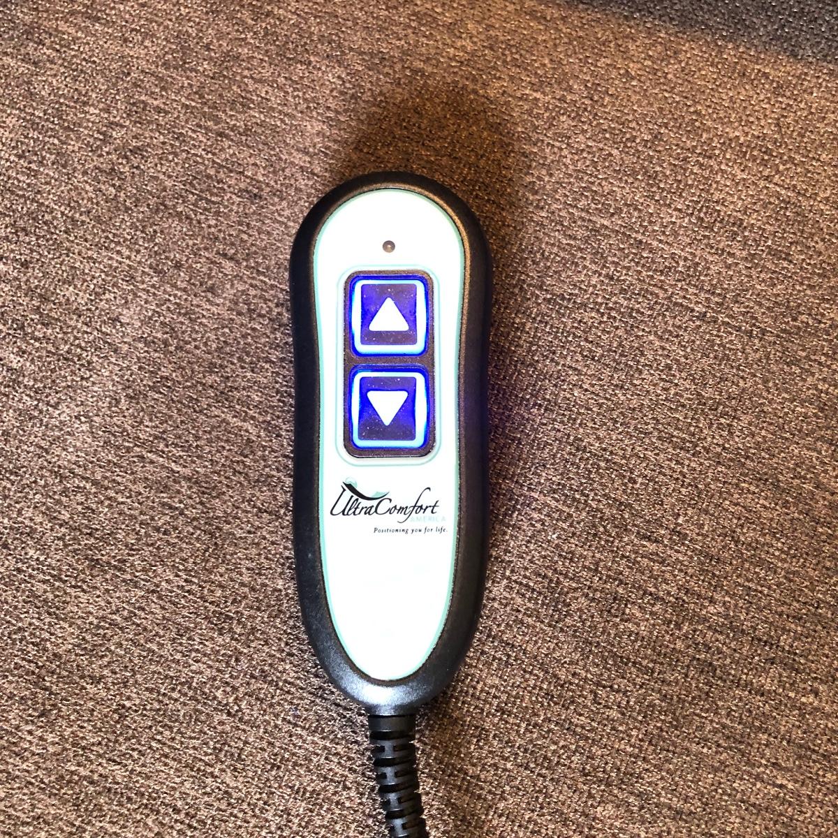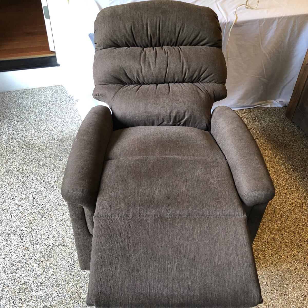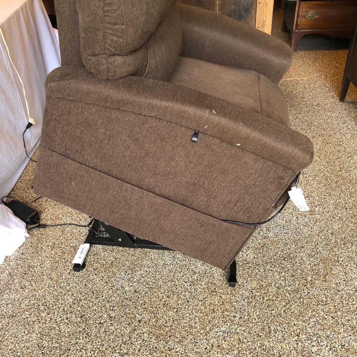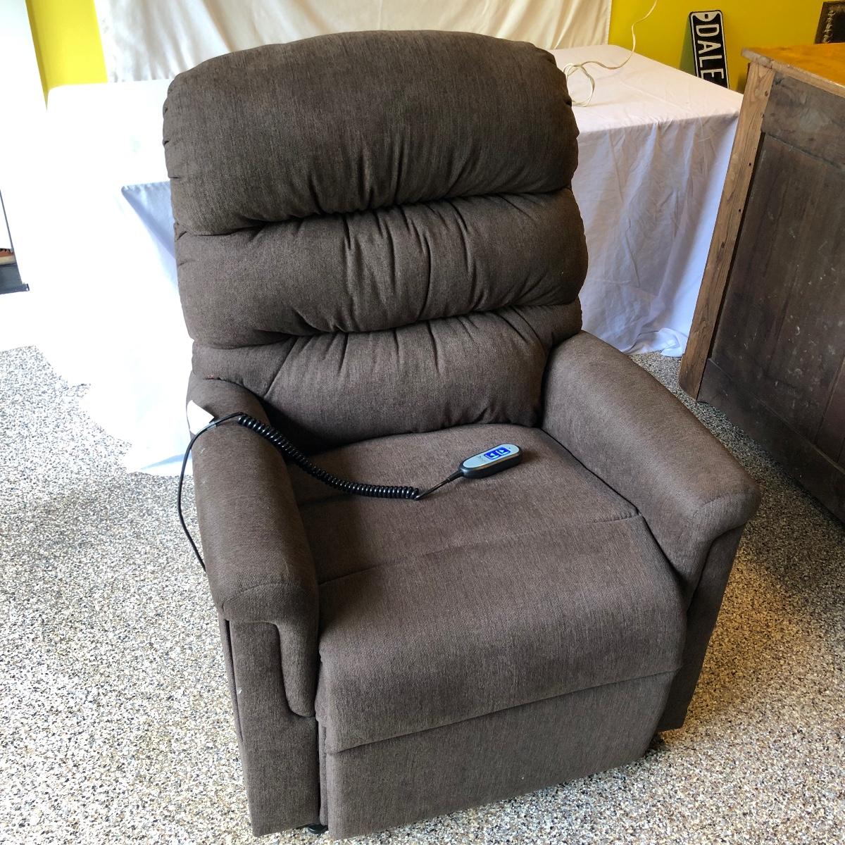 Lot includes fabric Ultra Comfort Power lift and recline chair that worked when tested and appears to be almost new but has a few marks on fabric, see pictures. Chair measures 32” x 36” x 44”. Bring help item is substantial.