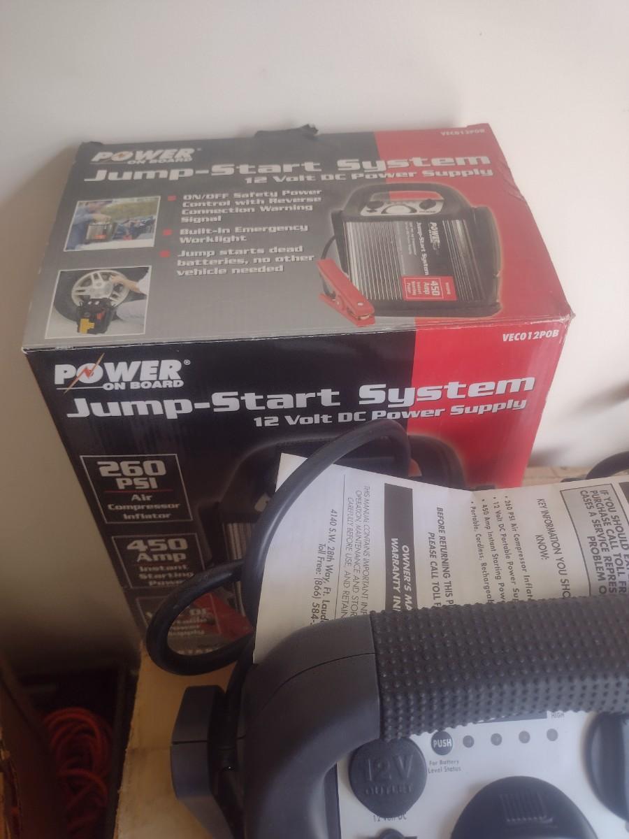 Power on Board 12 Volt Jump Start and Air Compressor System