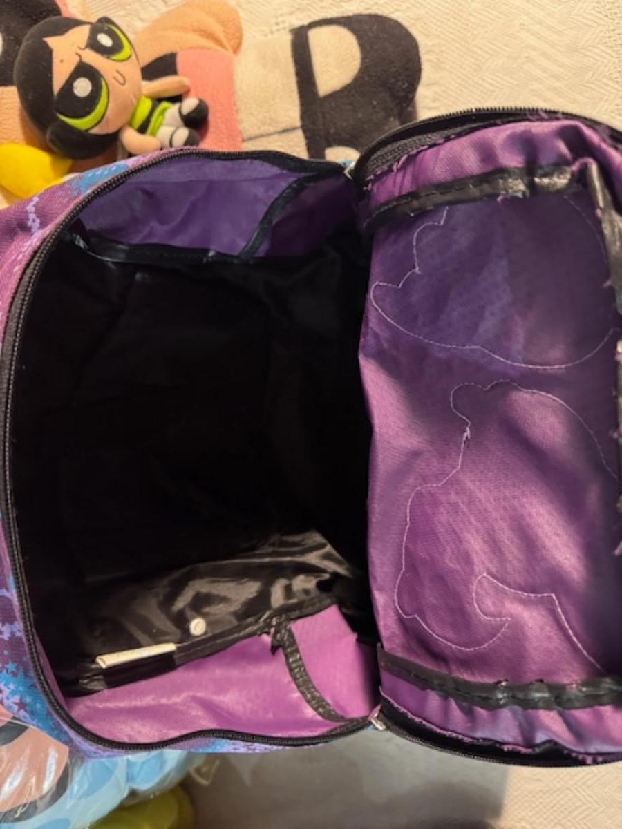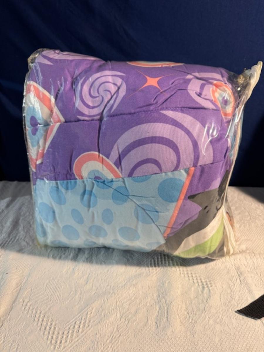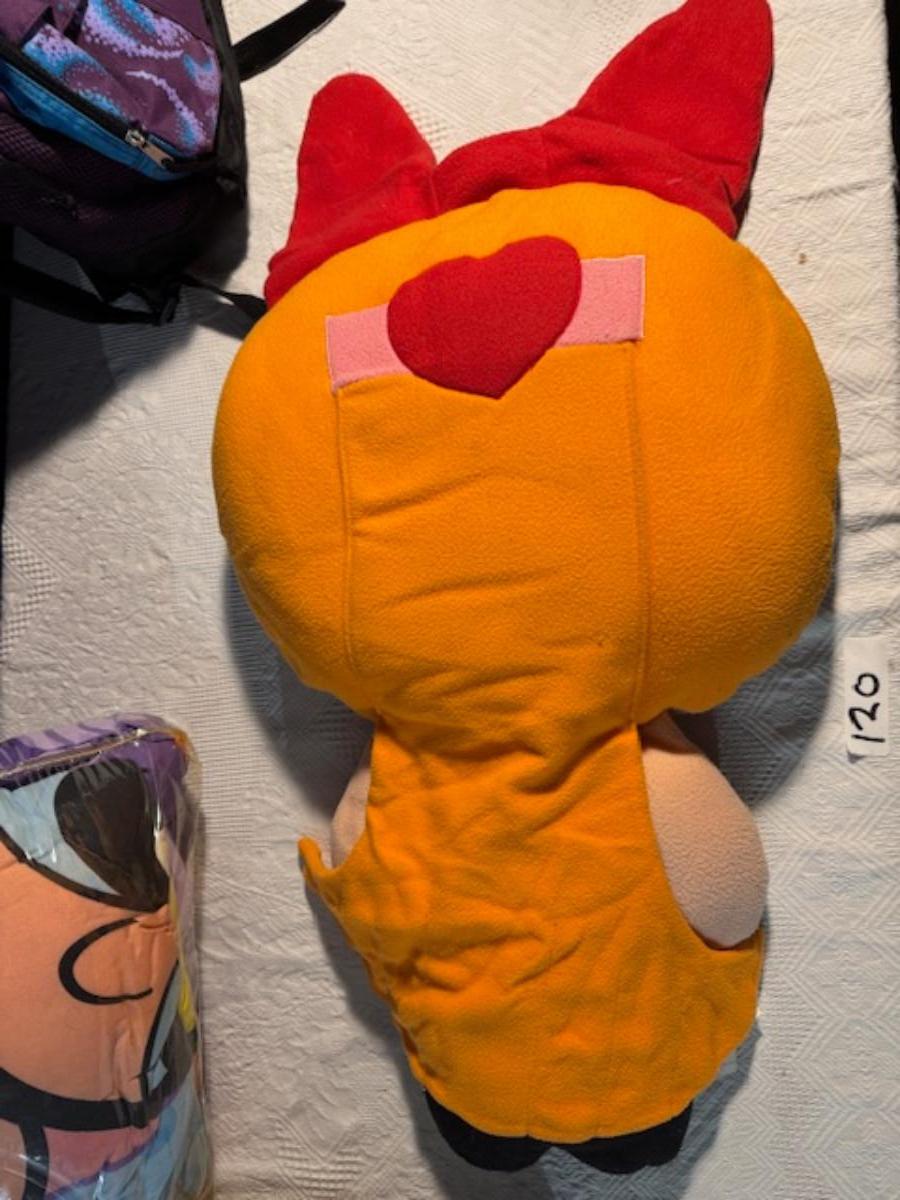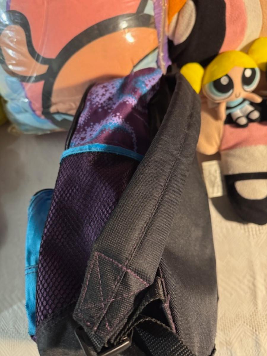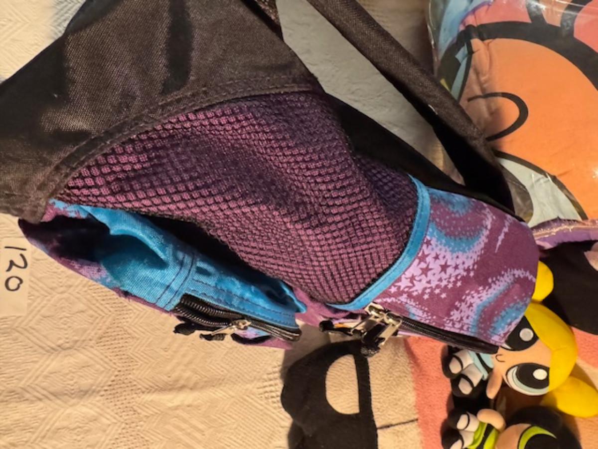 1. Power Puff Girls stuffed dolls approx. 36" tip to tip x 18". 2. approx. 32" ear to ear and 26" tip to tip. 3. head approx. 18" x 12". 4. 2x small 8" x 6.5". 5. Backpack approx. 18" x 14". 6. Twin blanket, twin sheet set.