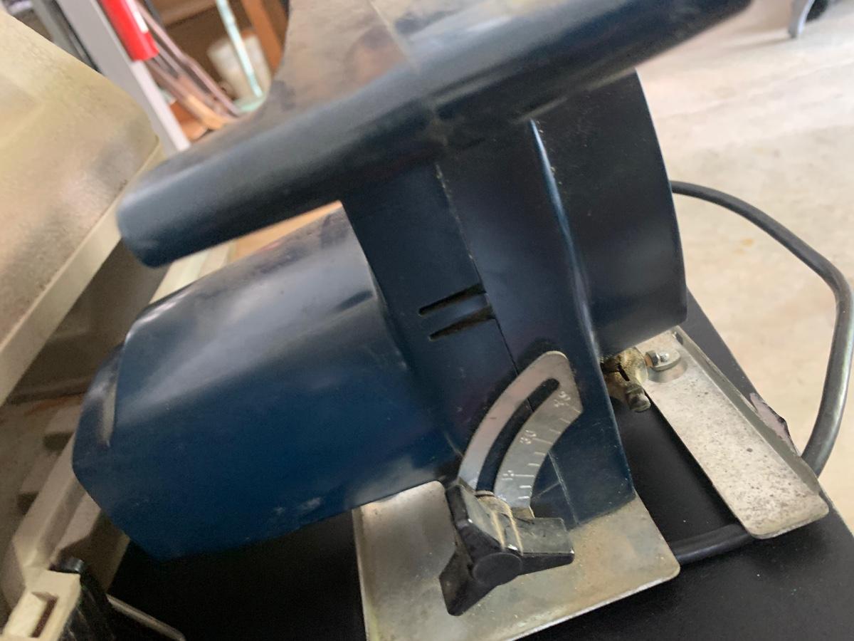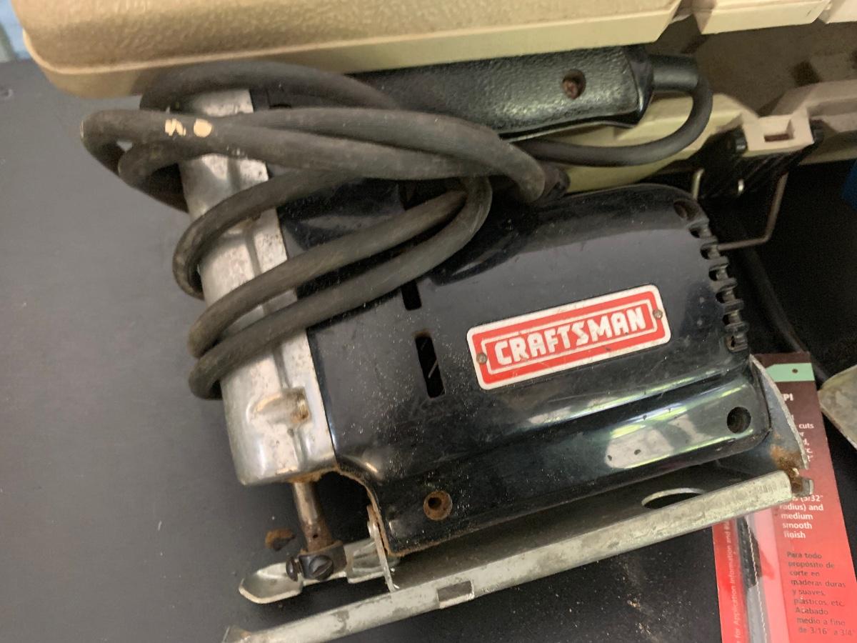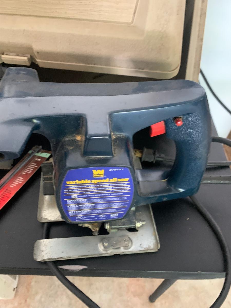 Just one item from a workshop FULL of power and hand tools. All power tools power up but were not tested further. Previous owner kept everything clean and made many of the furniture & decor items you see in the auction with these tools. Buying as is, as found in this wonderful estate. See many photos for content, condition, & measurements.