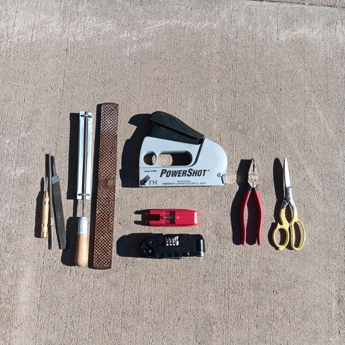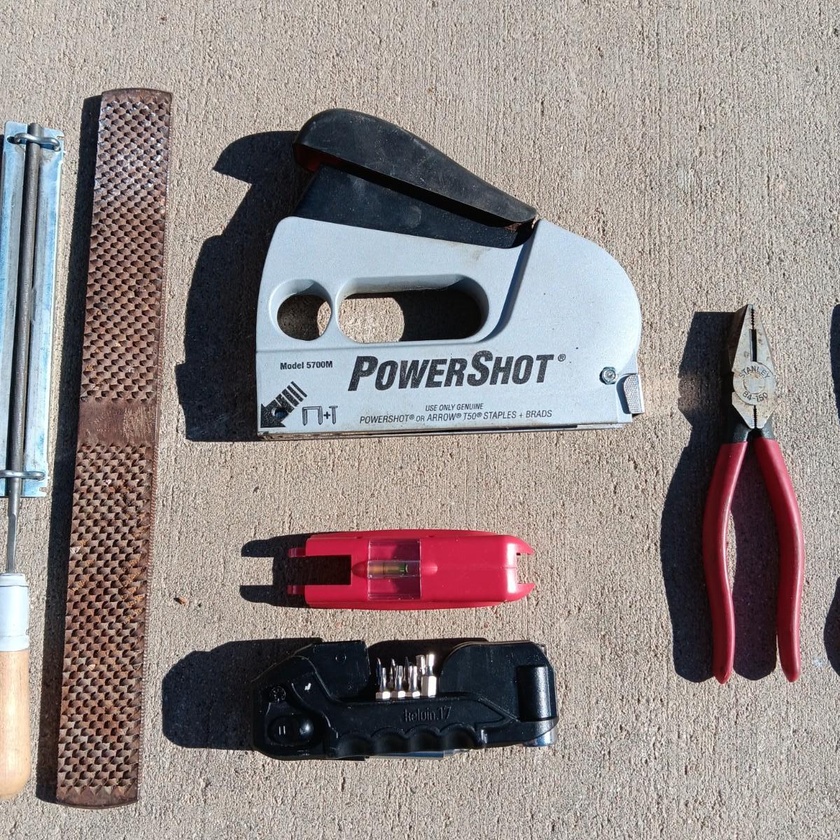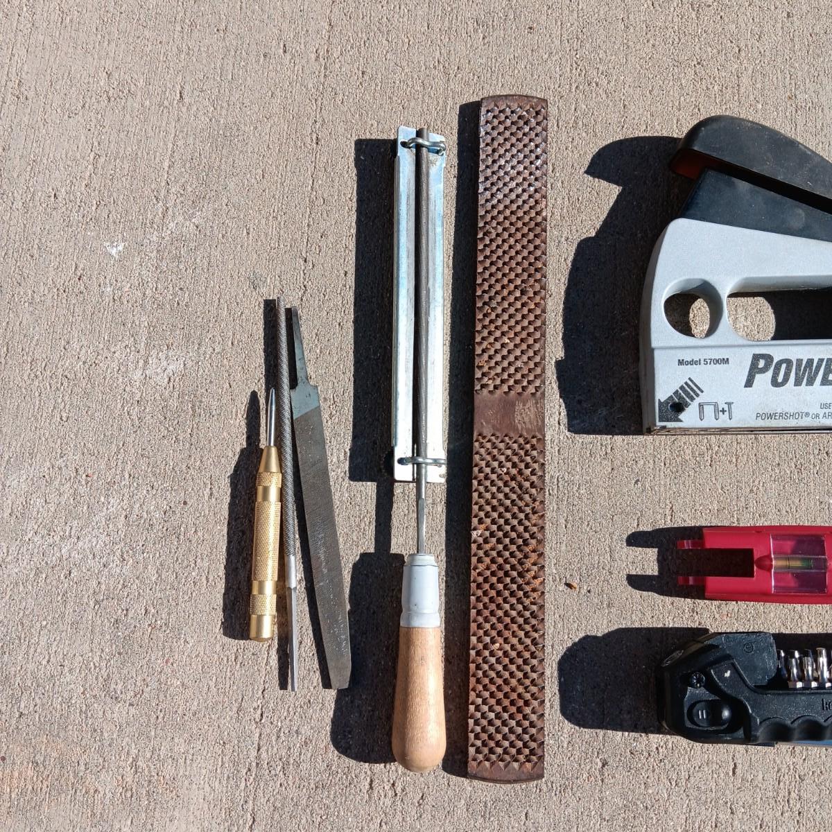 POWER SHOT STAPLE GUN, FILES, MULTI BIT TOOL, WIRE CUTTERS AND SCISSORS
