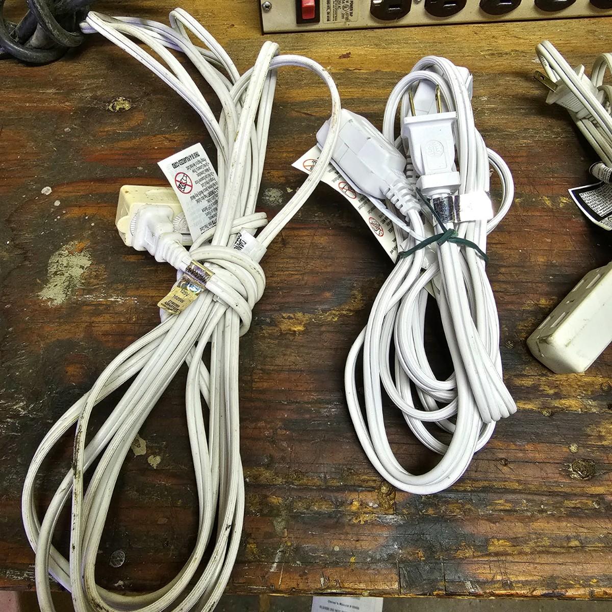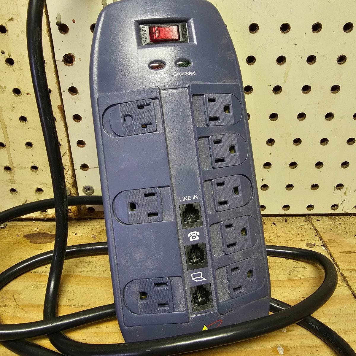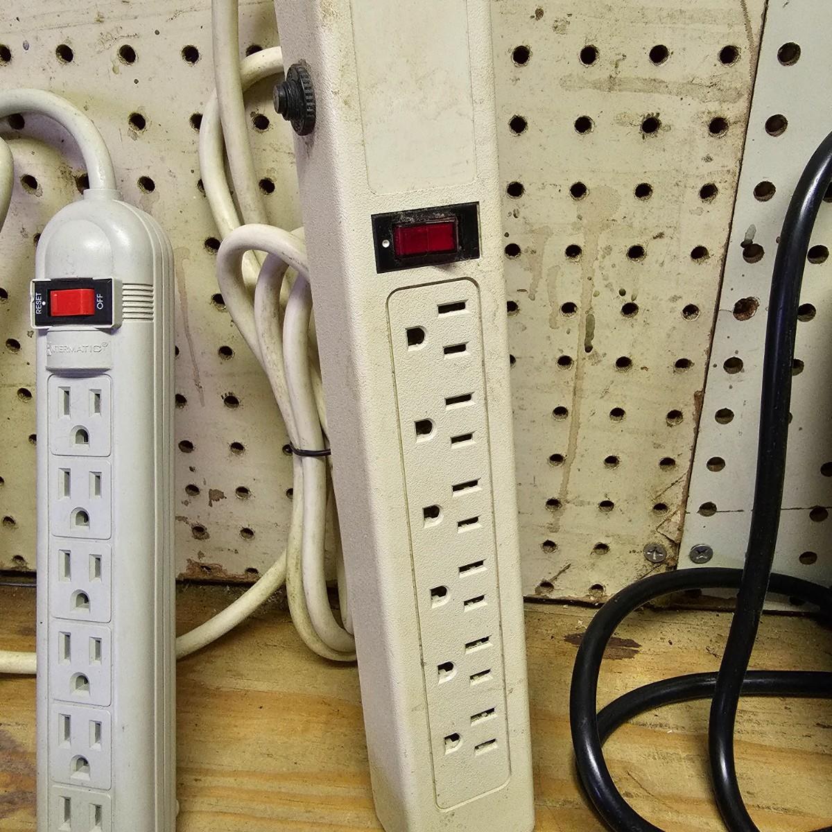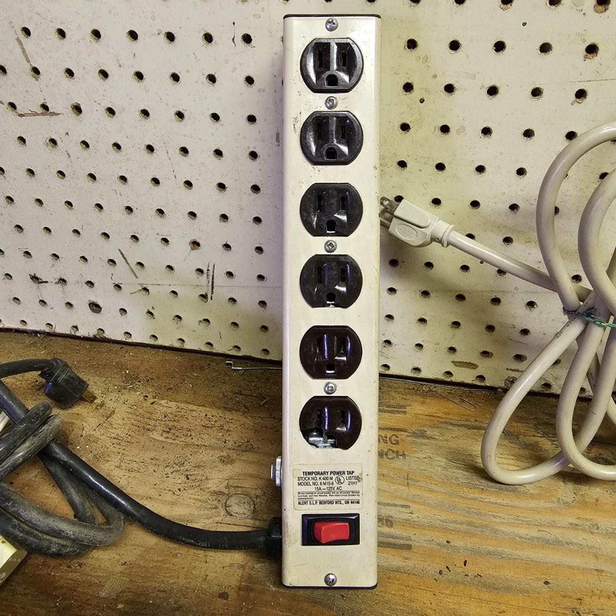 Five power strips, one wall outlet multiplier, and four extension cords. Power strips have six to eight outlets. All powered on when plugged in. One item has a cracked outlet, see photos for details. Shipping available.