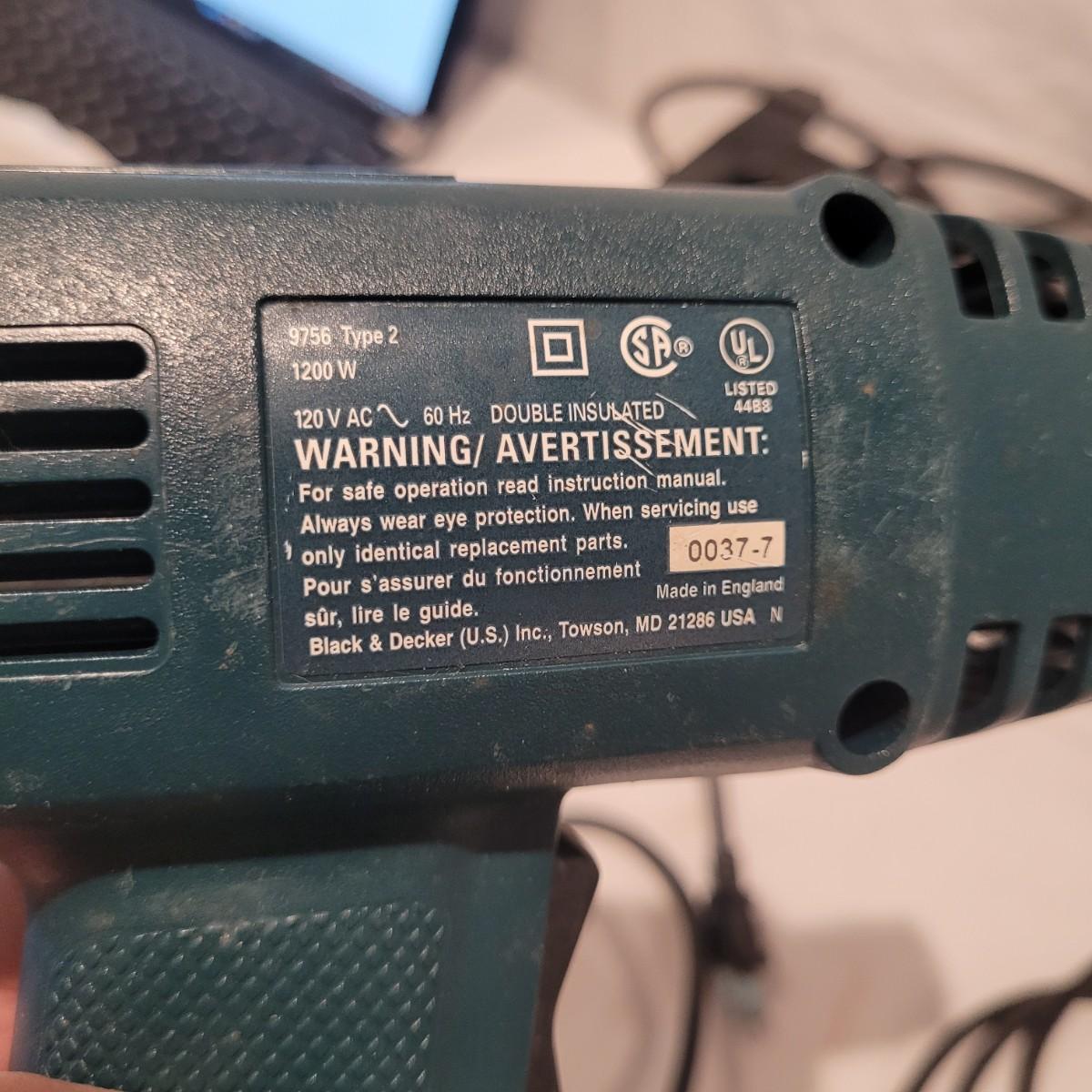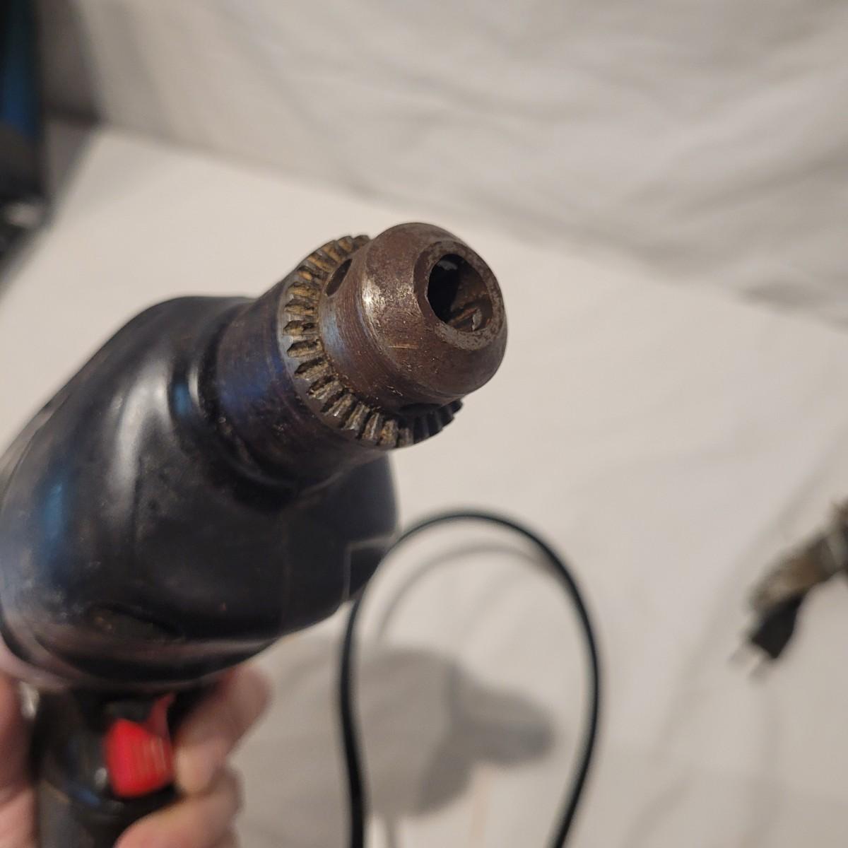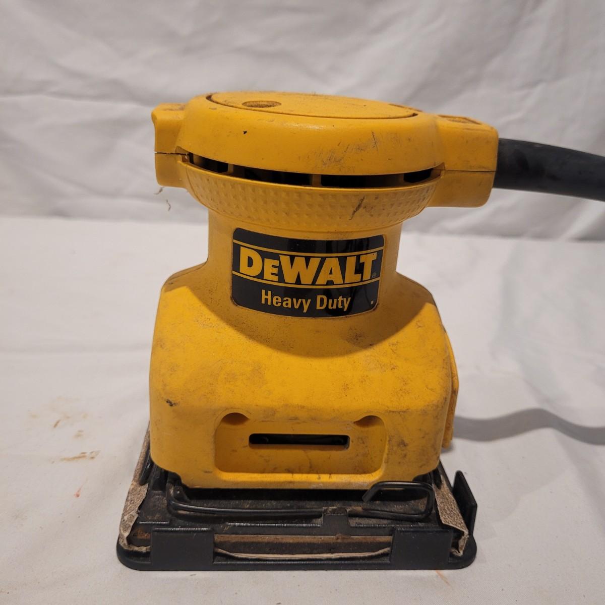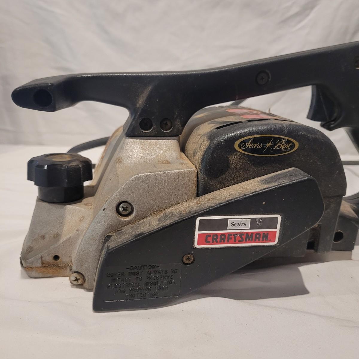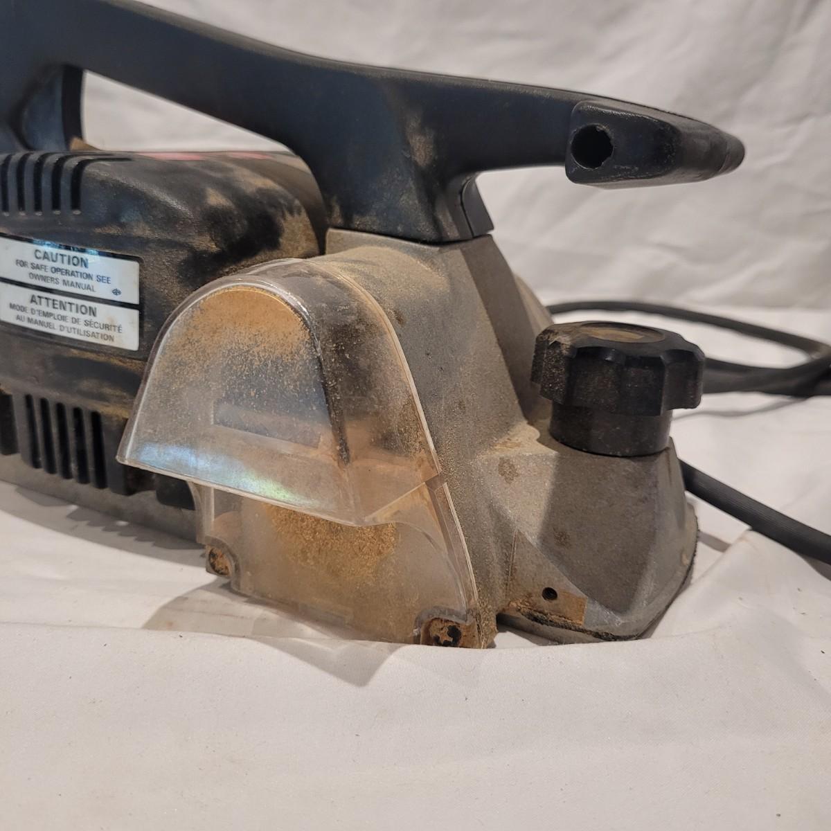 This lot of power tools includes an electric planer, heat gun, power drills, and a palm grip sander. All items power on when plugged in.