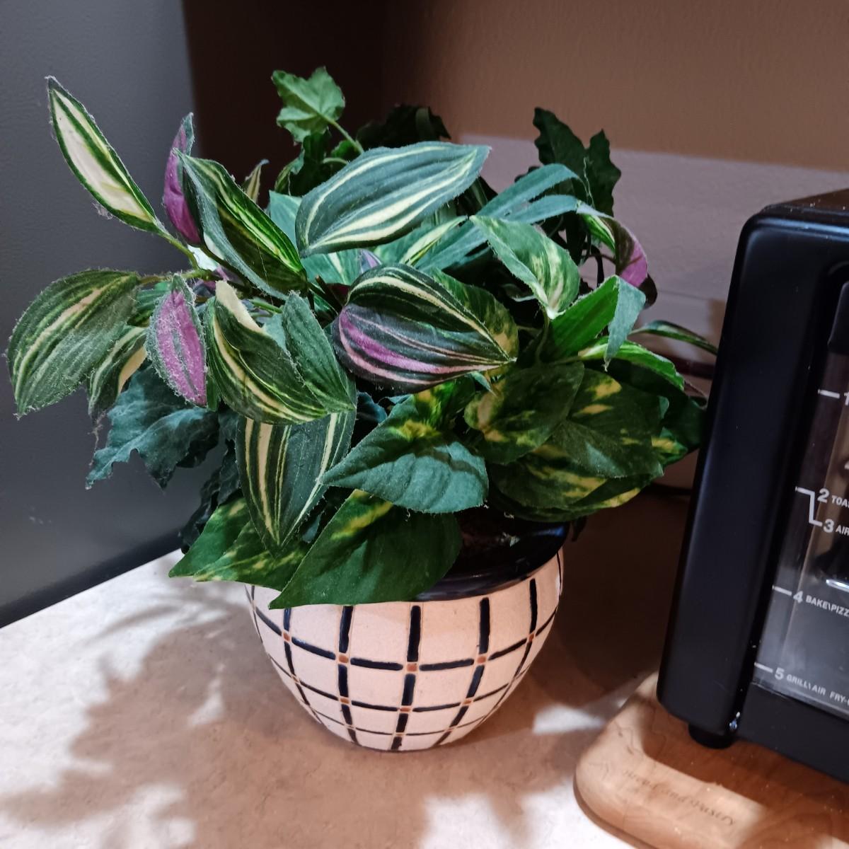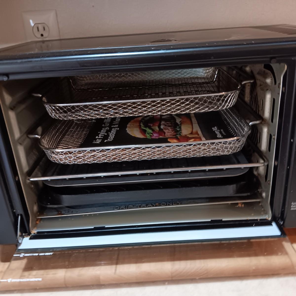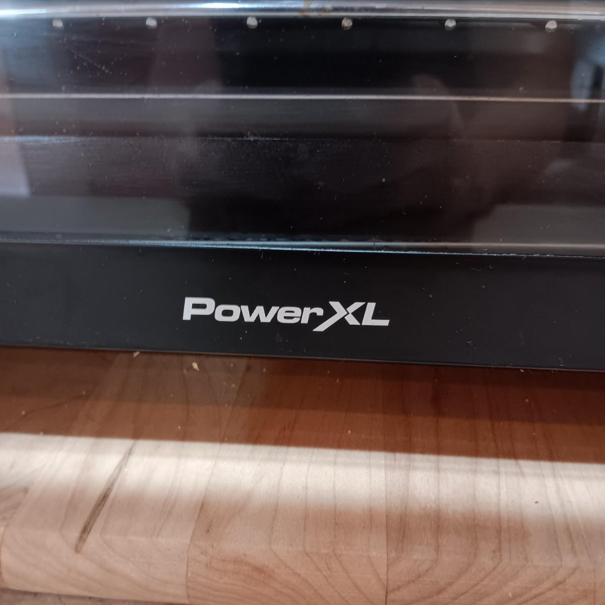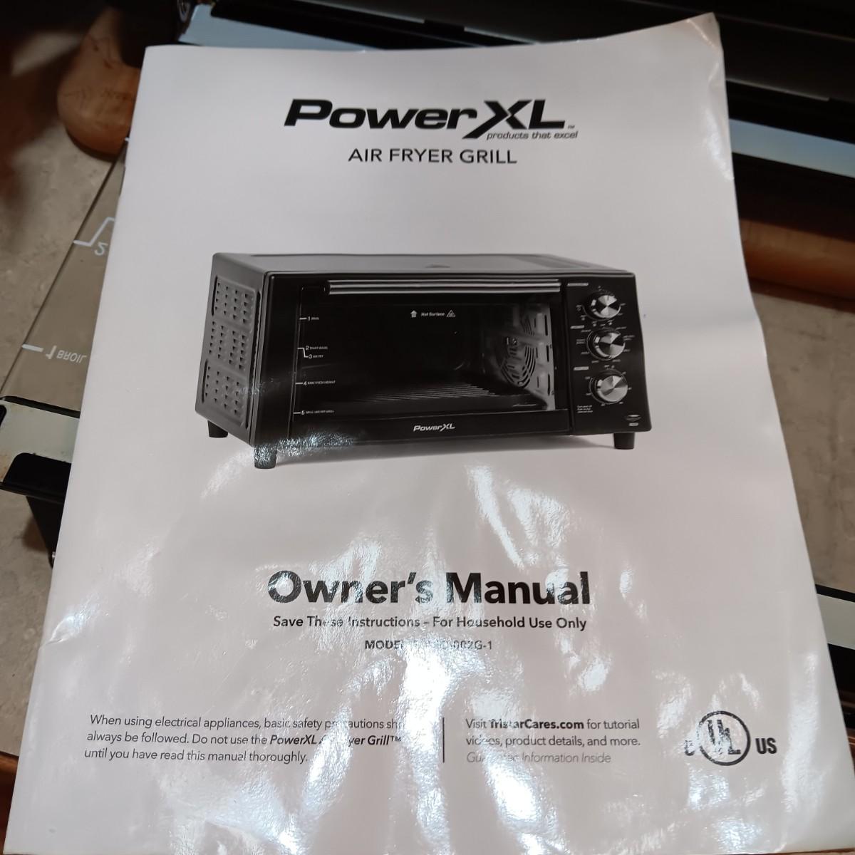 POWER XL AIR FRYER GRILL, WOODEN CUTTING BOARD AND FAUX PLANT