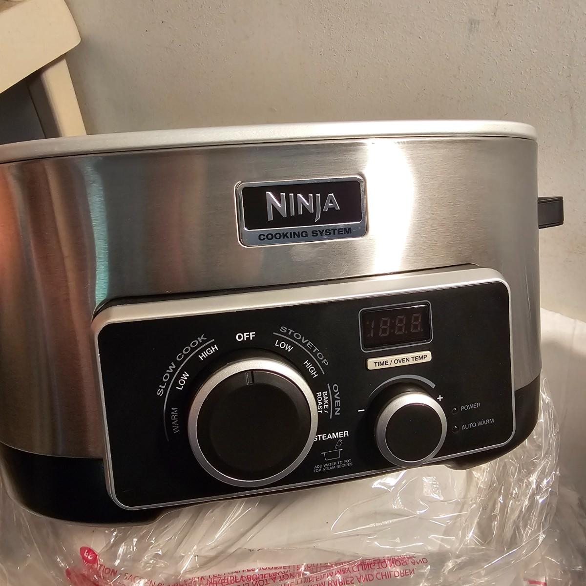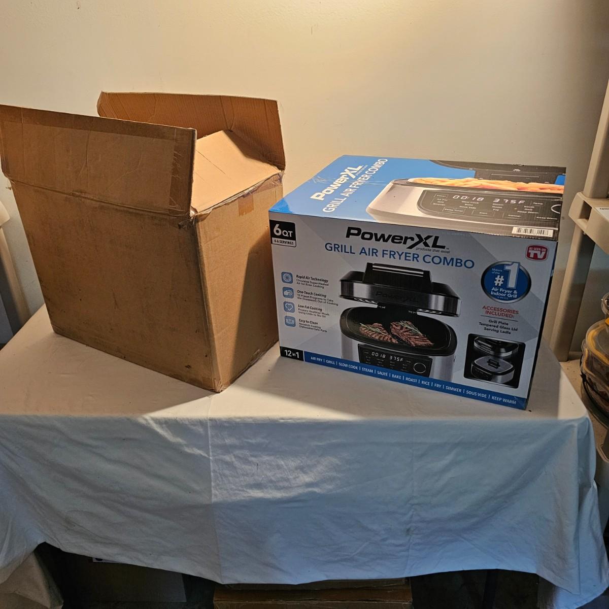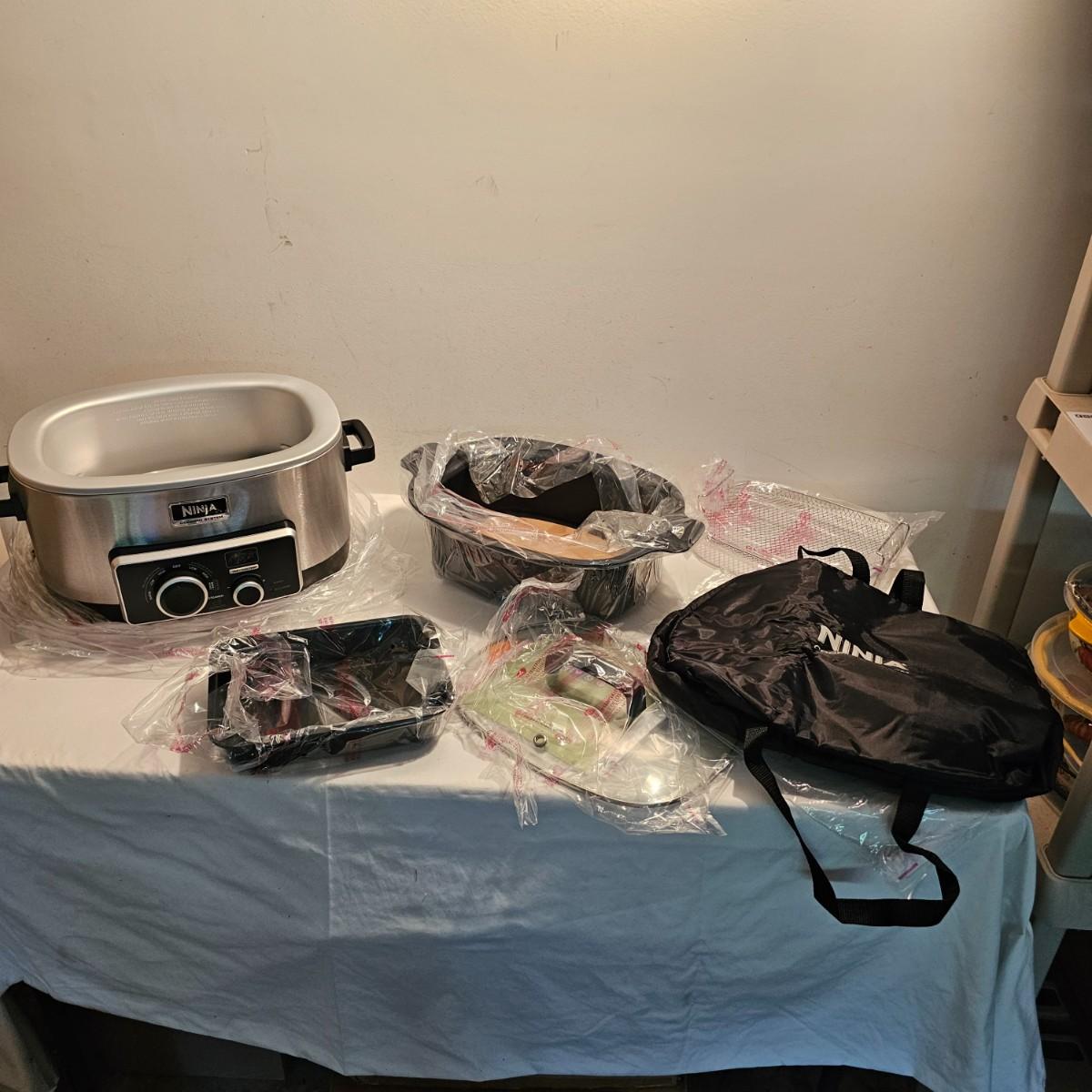Two NIB appliances for the kitchen. Ninja electric cooker comes with removable pot, mesh basket and smaller tray. Unit powered on when plugged in. PowerXL 6qt Fryer is new in sealed box, was not tested. See photos for details. Shipping available.