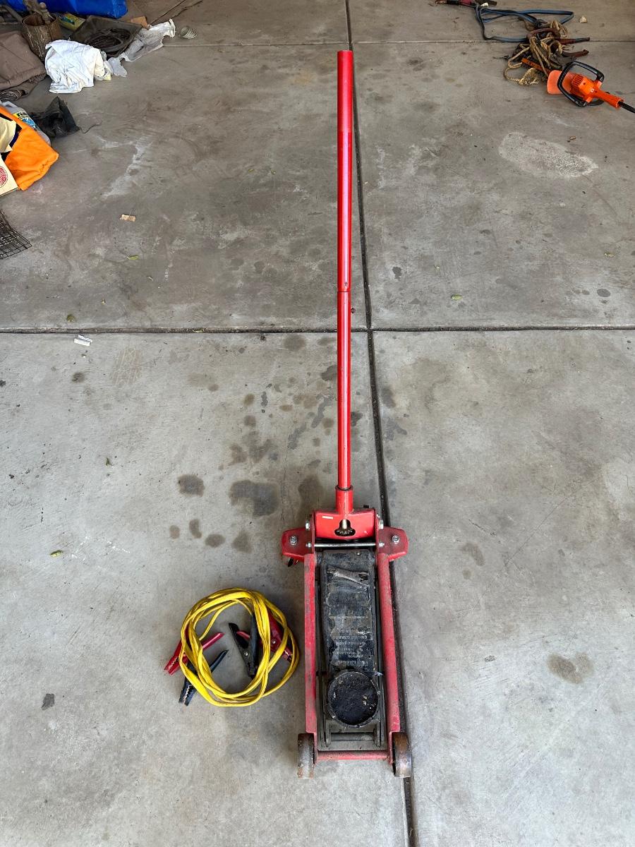 POWERBUILT 3 TON GARAGE JACK AND JUMPER CABLES