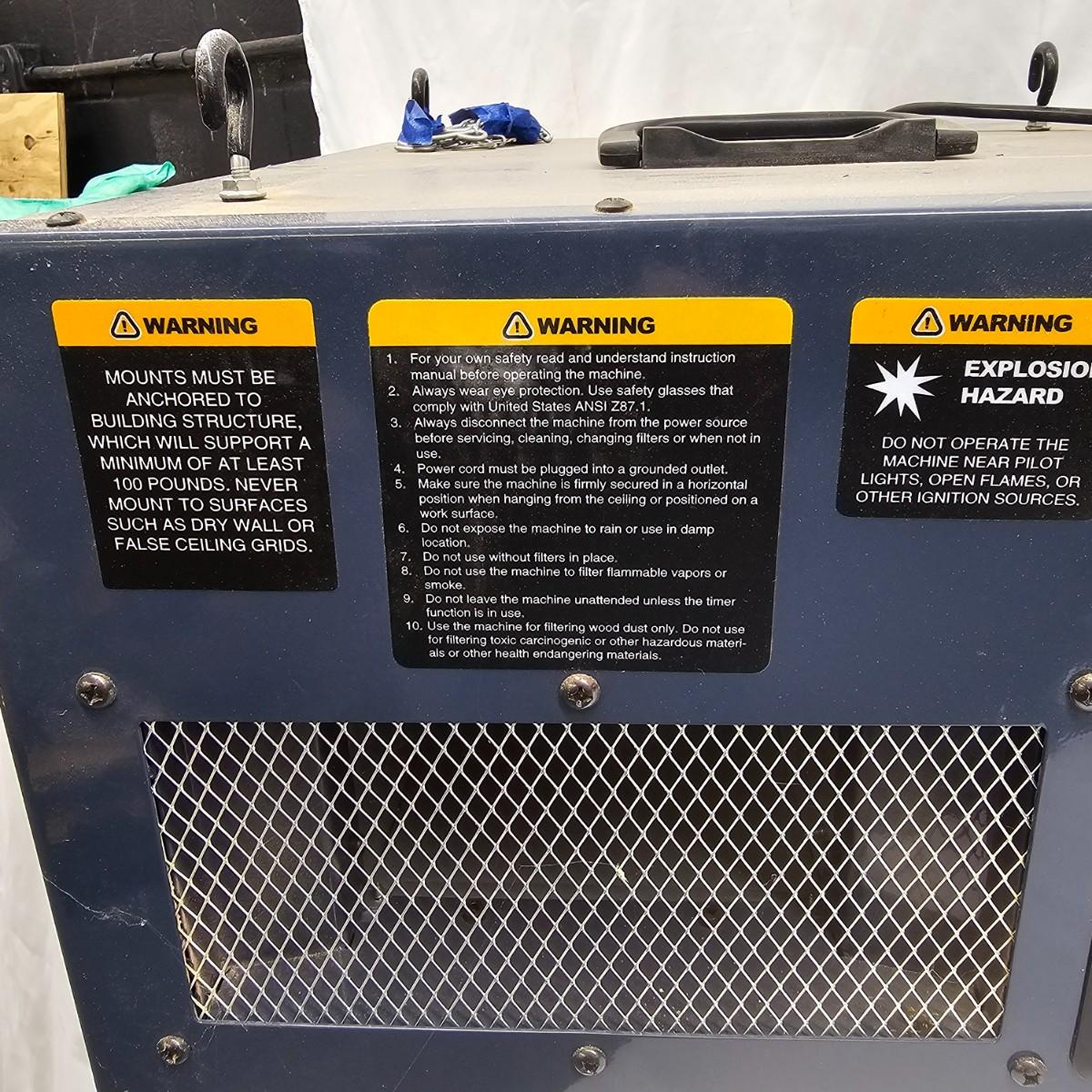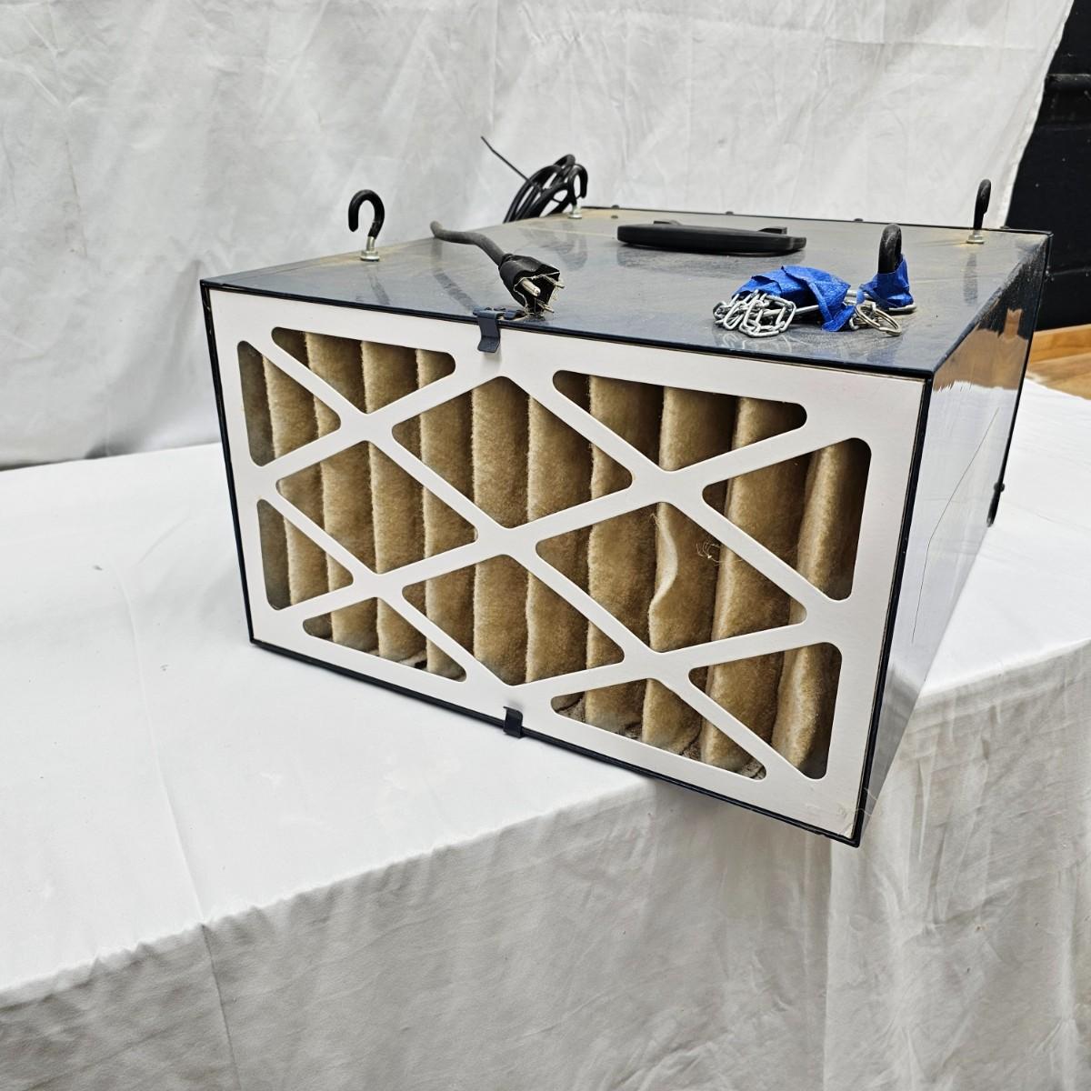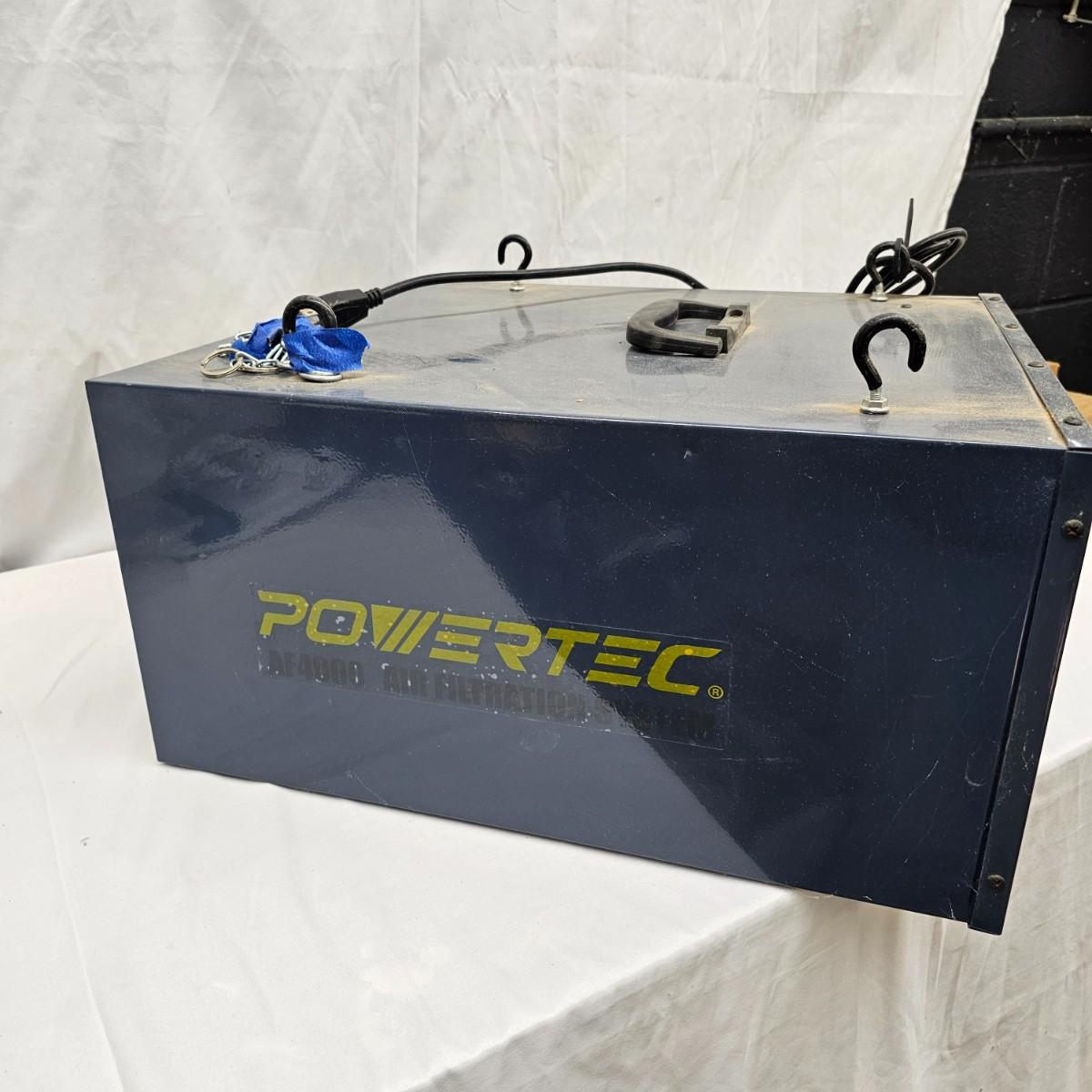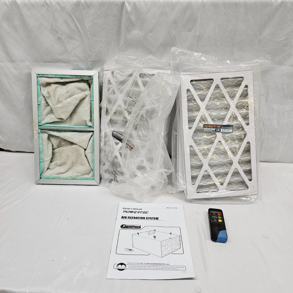 Ceiling mount air filtration unit by Powertec. Comes with additional filters, manual and remote control. Unit also has some mounting hardware. Measures 17" x 20" x 12"H, powered on when plugged in. See photos for details. Local pickup only.