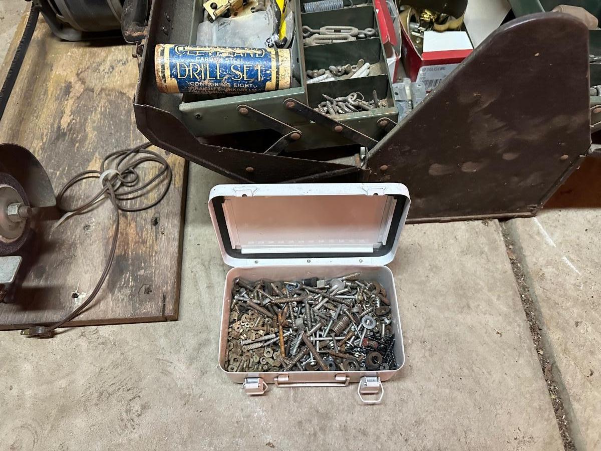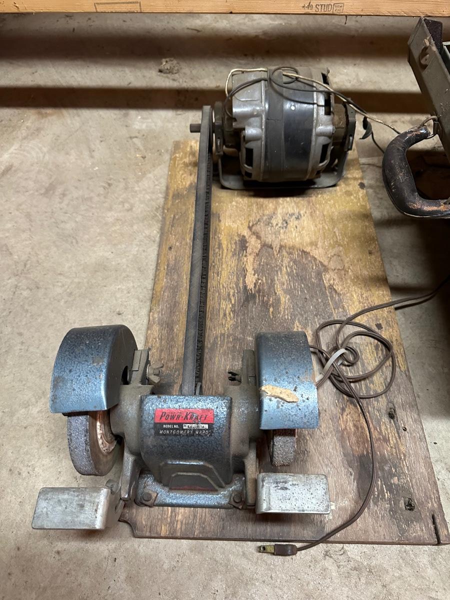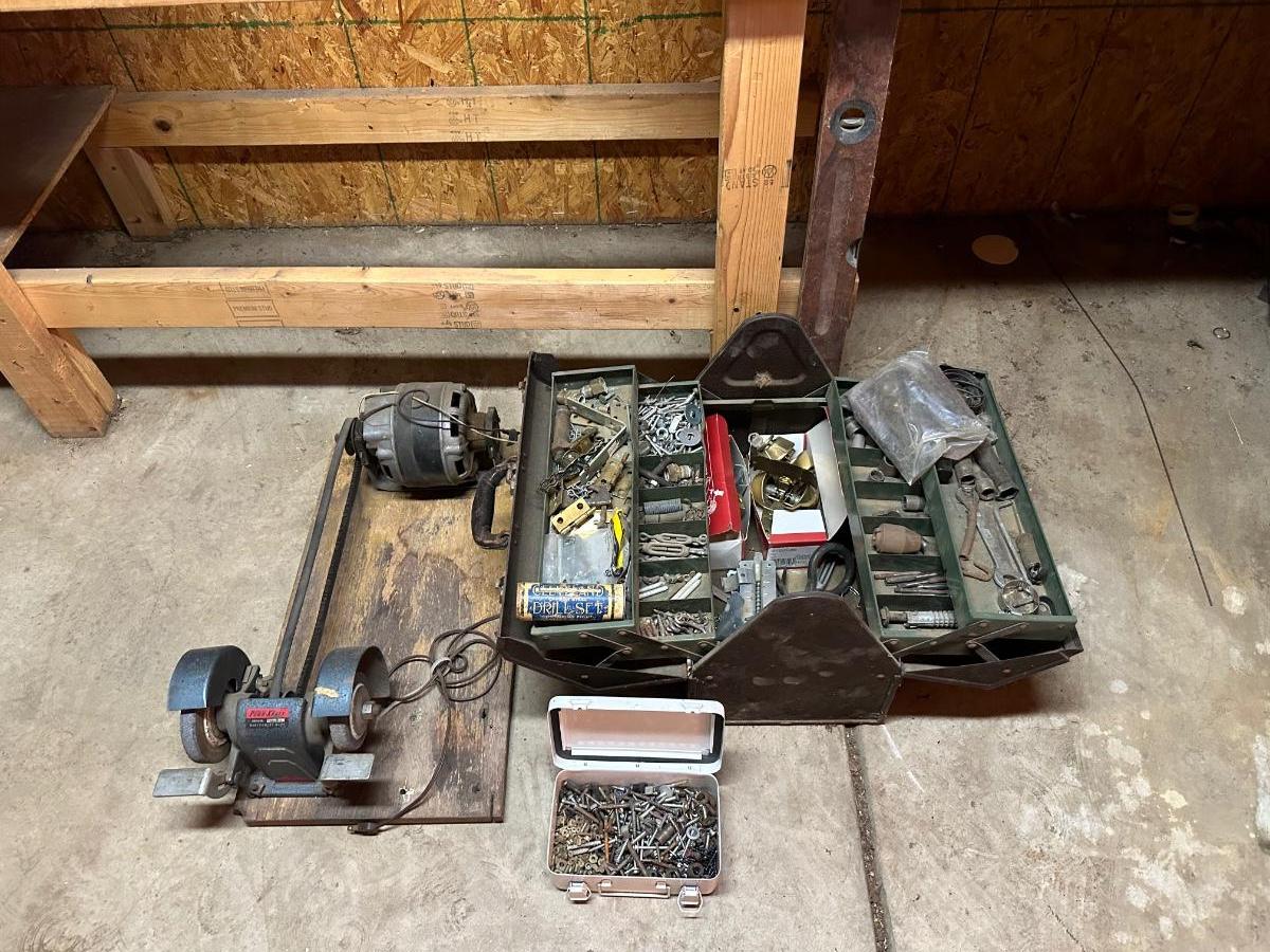 POWR KRAFT BENCH GRINDER, TOOLBOX, HARDWARE AND MORE