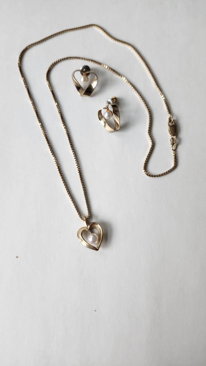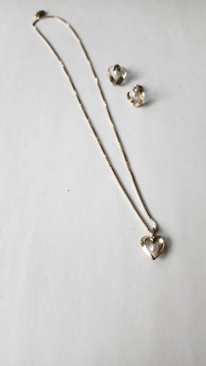 PPG 14KGF Pearl Earrings and Necklace