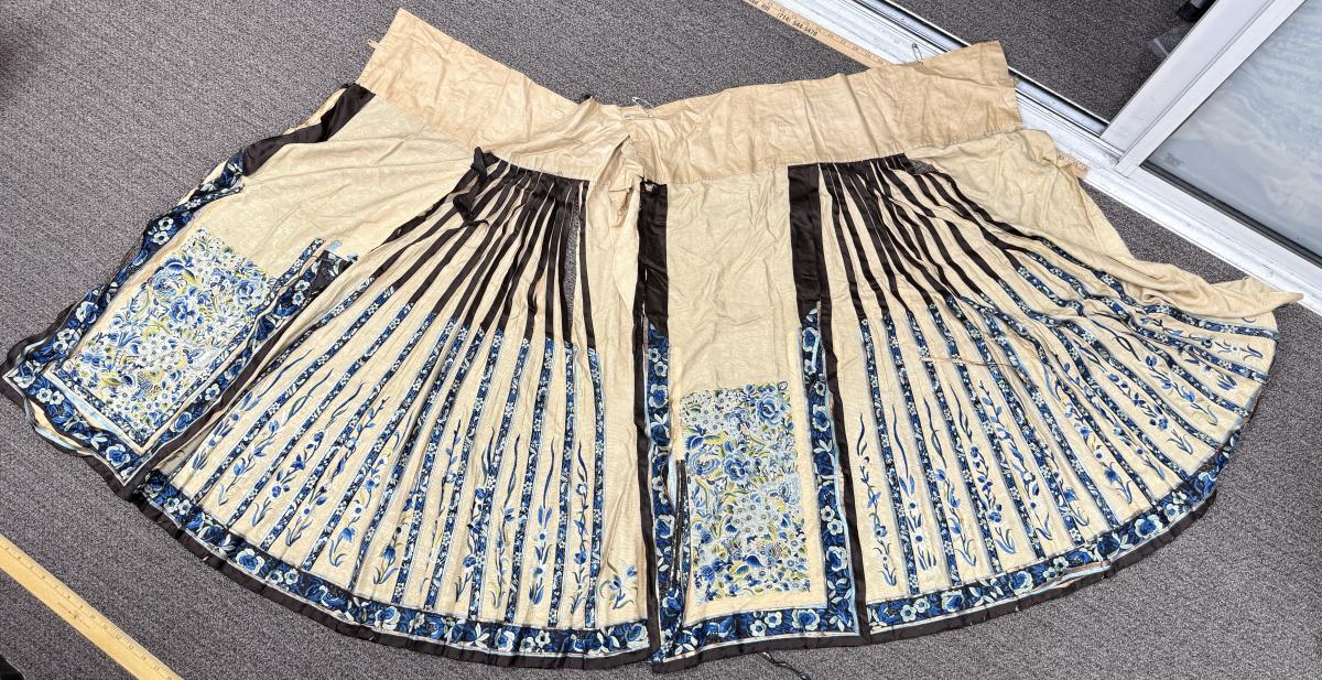 Very old, very beautiful silk apron skirt. Don't know if it's missing anything Fabric is very delicate and would recommend not too much handling. Comes with the vintage box I found it in.