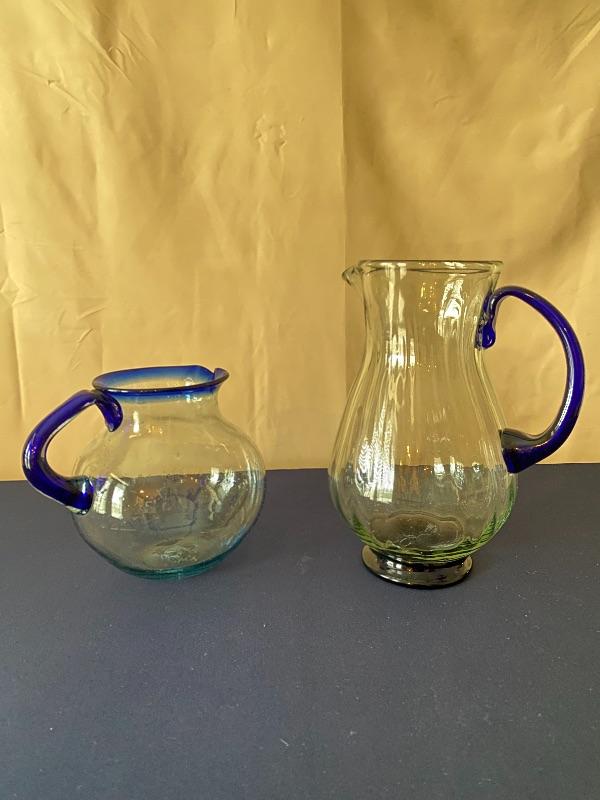 10 3/4,7 1/4 Clear with cobalt accents pitchers