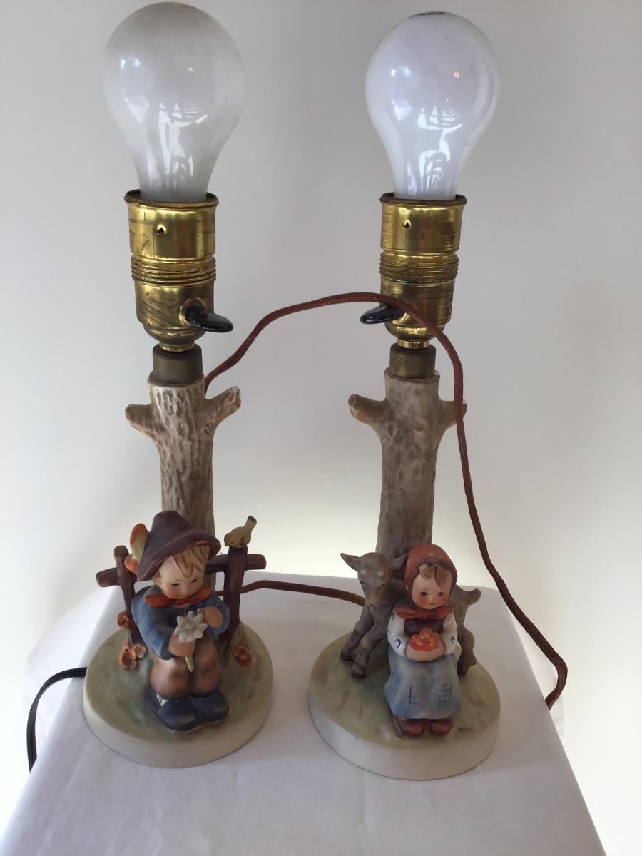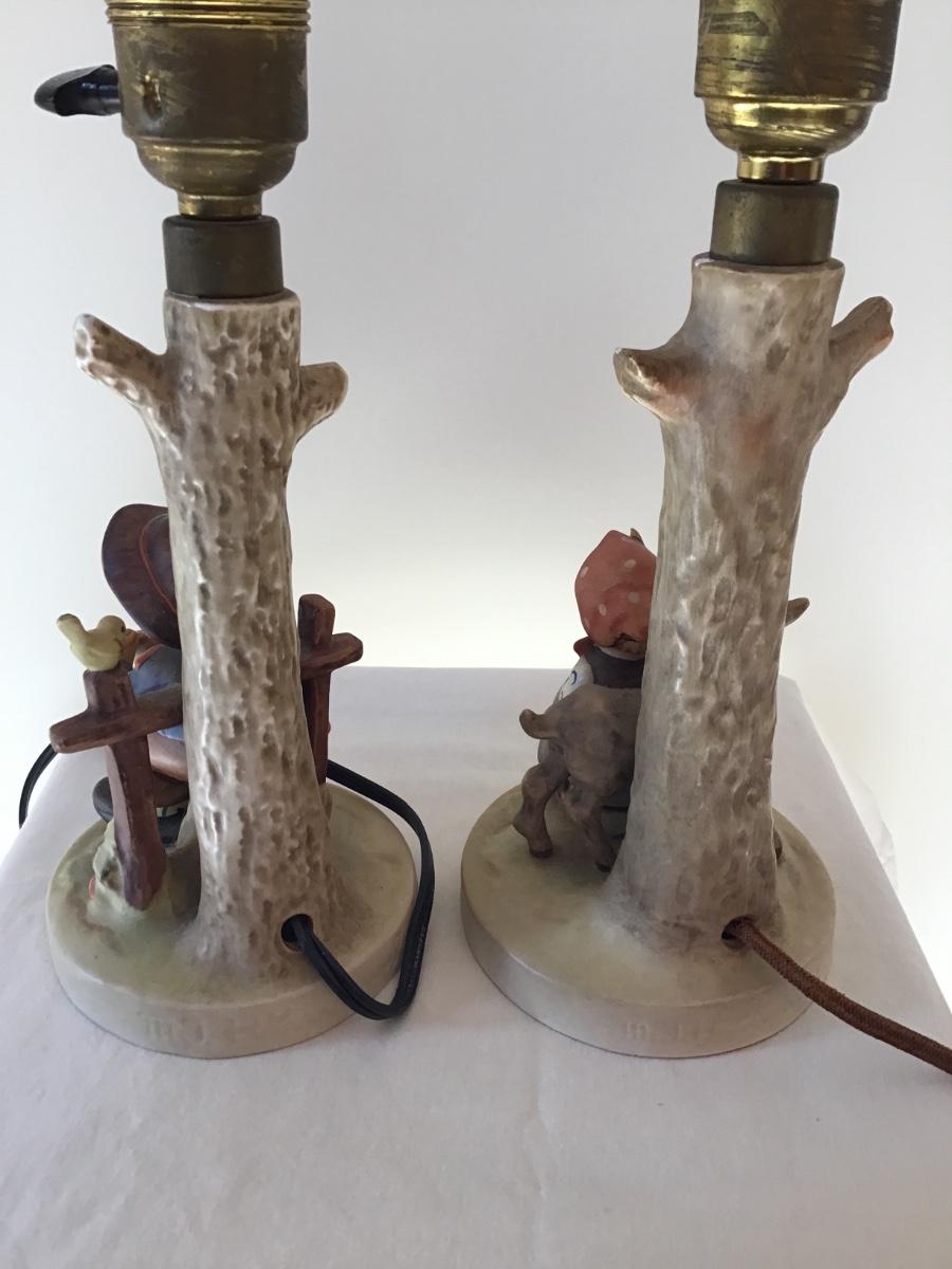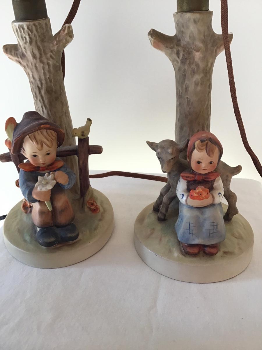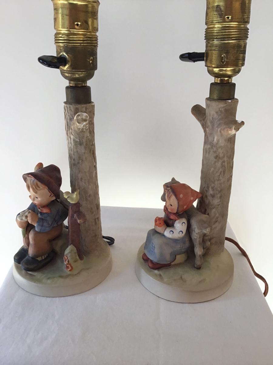 Pr Hummel Table Lamps “She Loves Me She Loves Me Not” #227 And “Good Friends” ORIGINAL SHADES INCLUDED