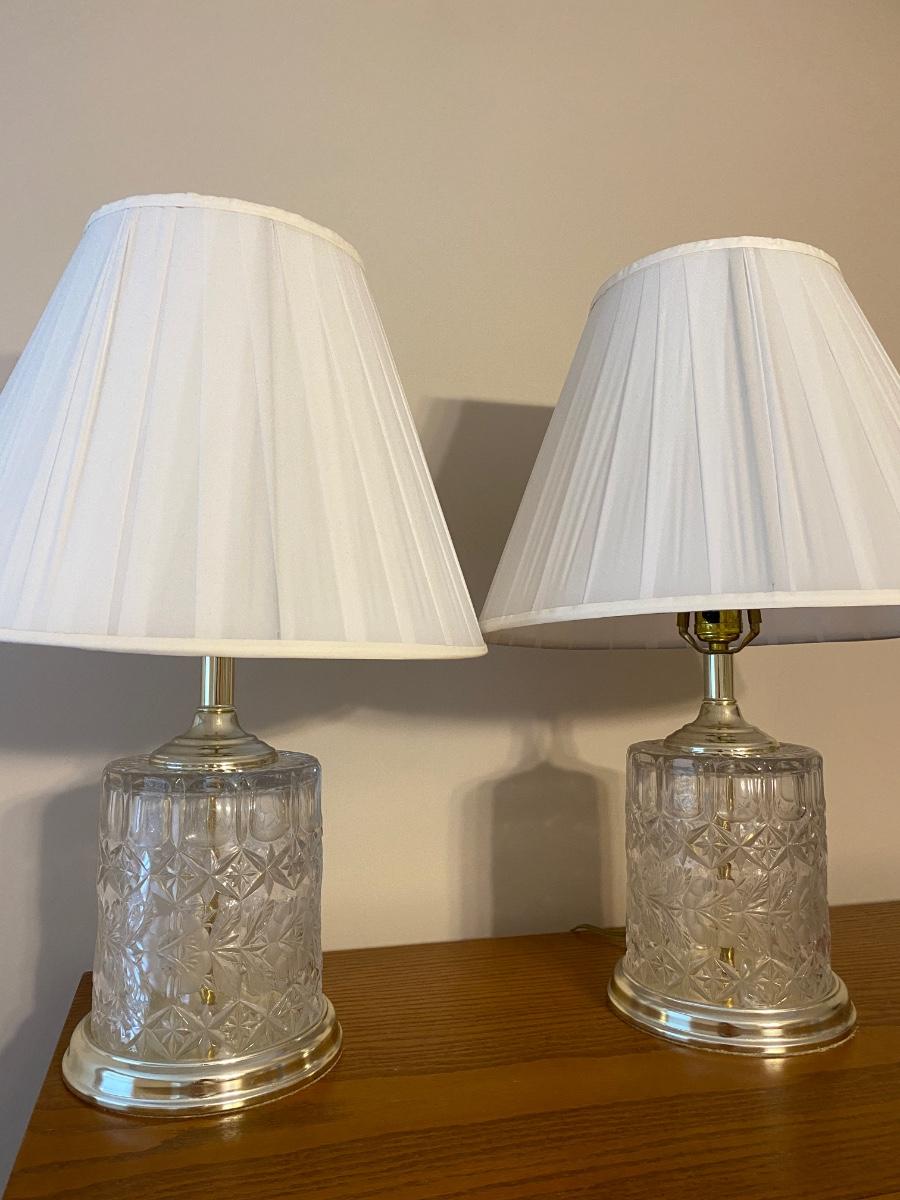 Pr of Crystal Lamps w/ Shades 21.5 Tall