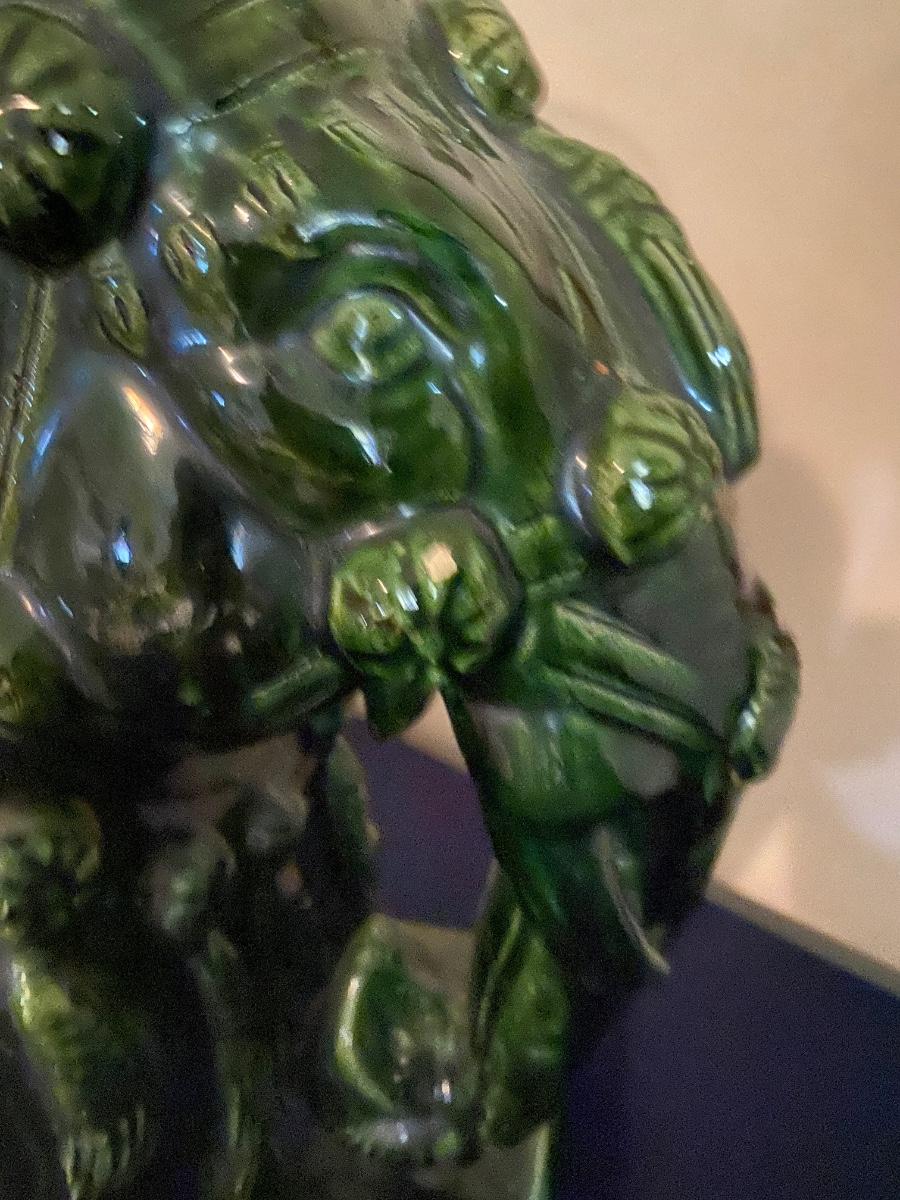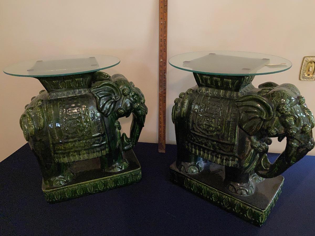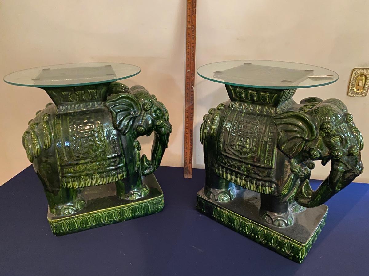 Pr of Green Elephant Base Glass Top End Tables, Minor Wear, 22x21x17