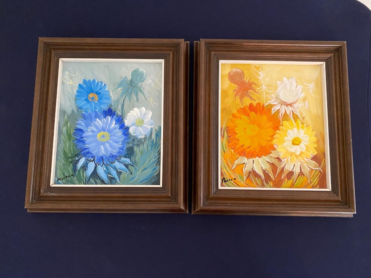 Pr of Paintings 14x12 Floral Paintings on Canvas Signed Moreno